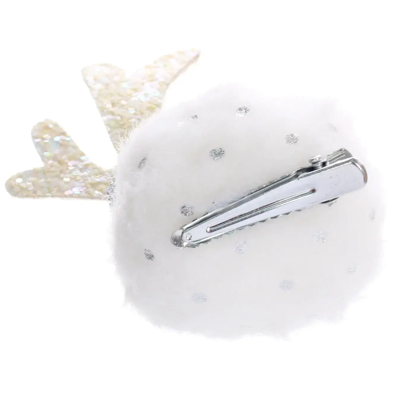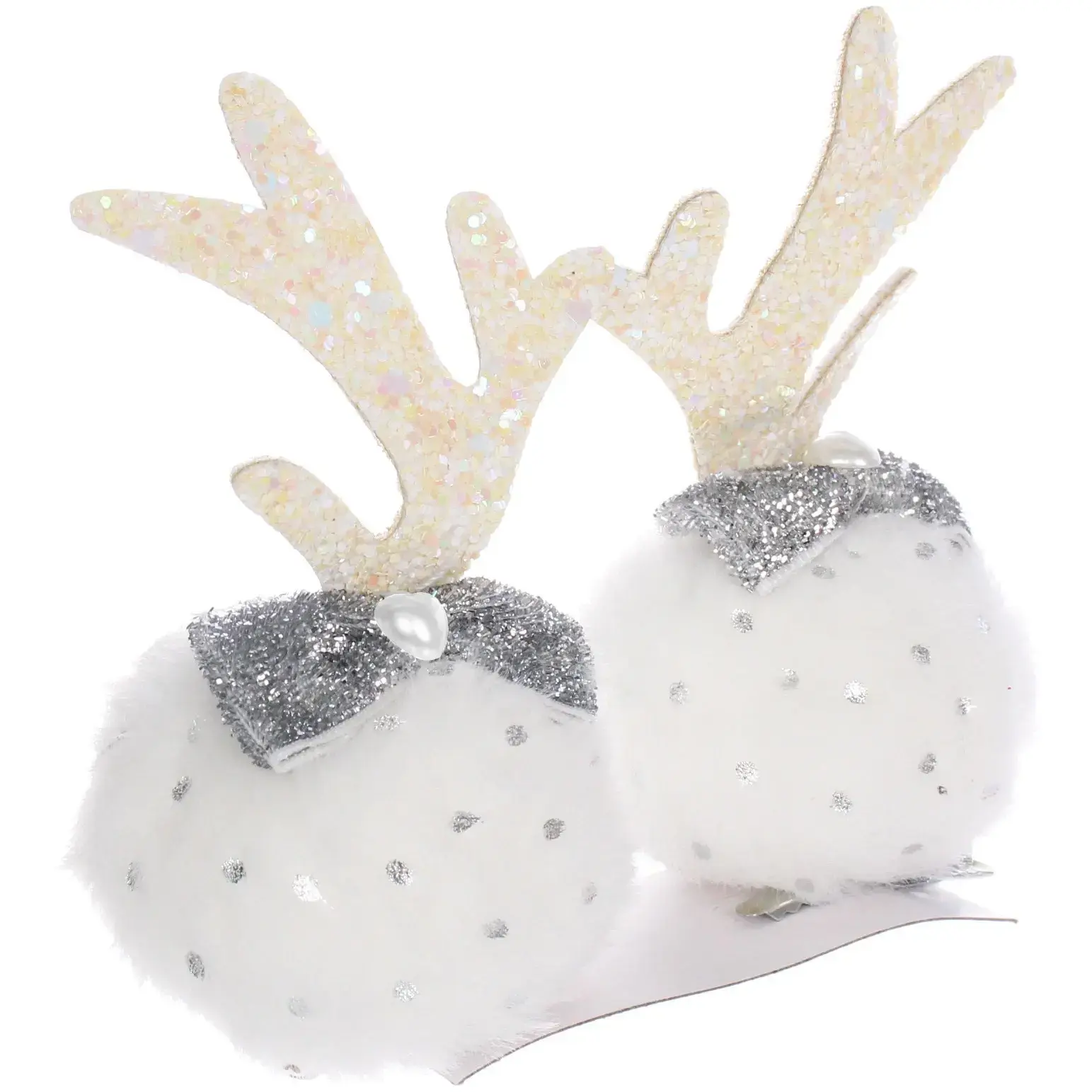 Преимущества этого зажима очевидны: он не только красив, но и практичен. С его помощью вы сможете быстро и легко создать стильную прическу, не тратя много времени. Белый цвет с блестящими элементами и оригинальный дизайн в виде рожек олененка делают его идеальным выбором для создания новогоднего настроения.