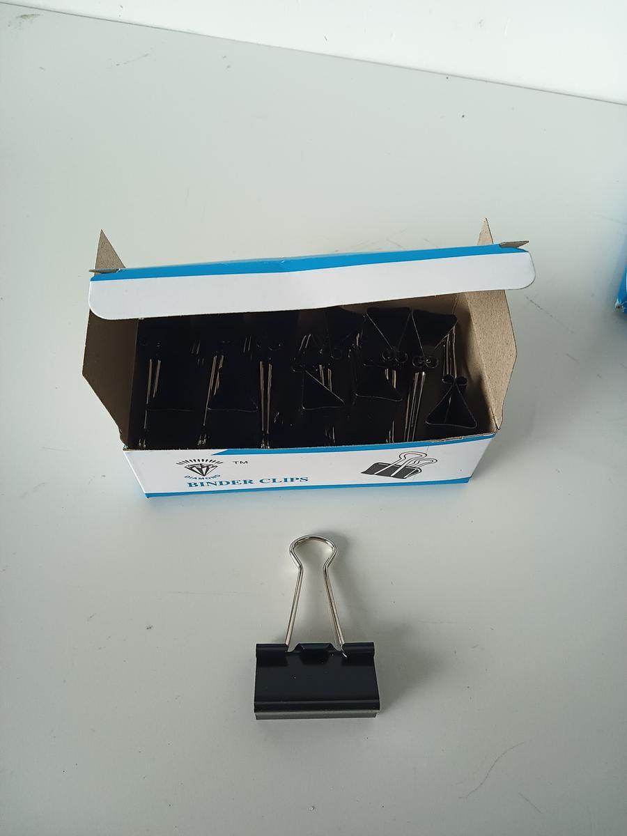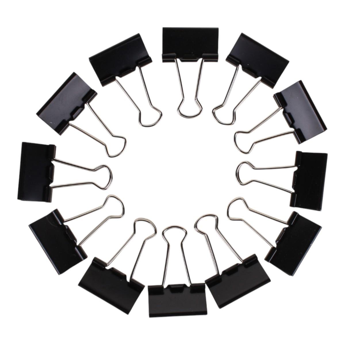 В комплекте 12 штук черного цвета, которые отлично сочетаются с любым стилем оформления рабочего пространства. Удобная картонная коробка защитит зажимы от повреждений и позволит хранить их в порядке.