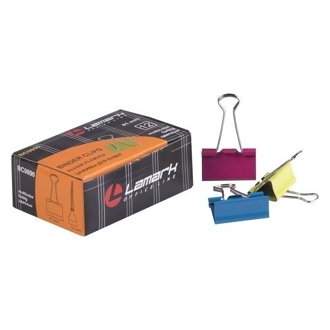 Зажимы для бумаг неоновые, 41 мм, 12 шт в коробке, цветные, Lamark