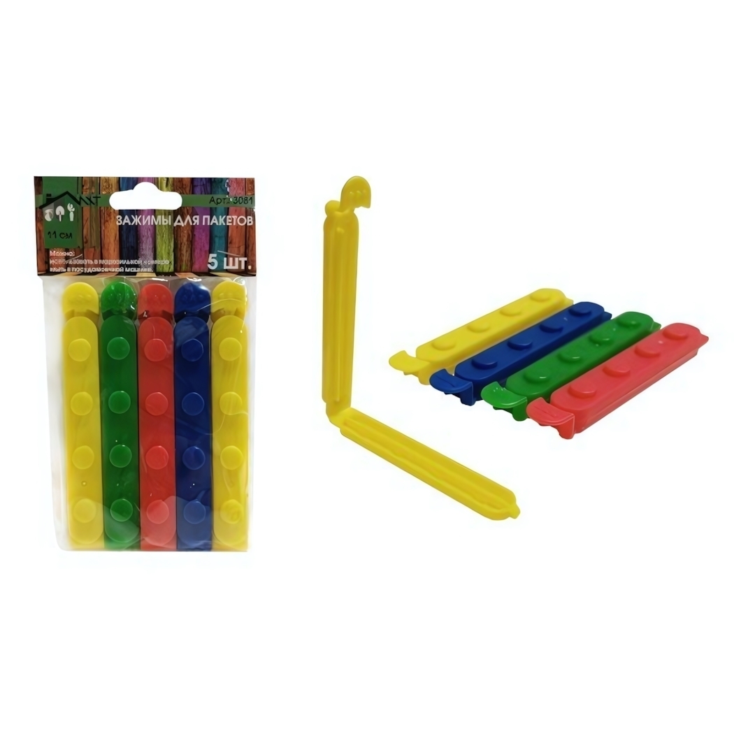 Размер каждого зажима составляет 11 см, что идеально подходит для стандартных пластиковых пакетов. Простая и надежная конструкция позволяет крепко держать даже объемные и плотные пакеты без риска их рассыпания. Эти зажимы станут незаменимым аксессуаром в доме, помогая поддерживать порядок и свежесть ваших продуктов за короткое время.