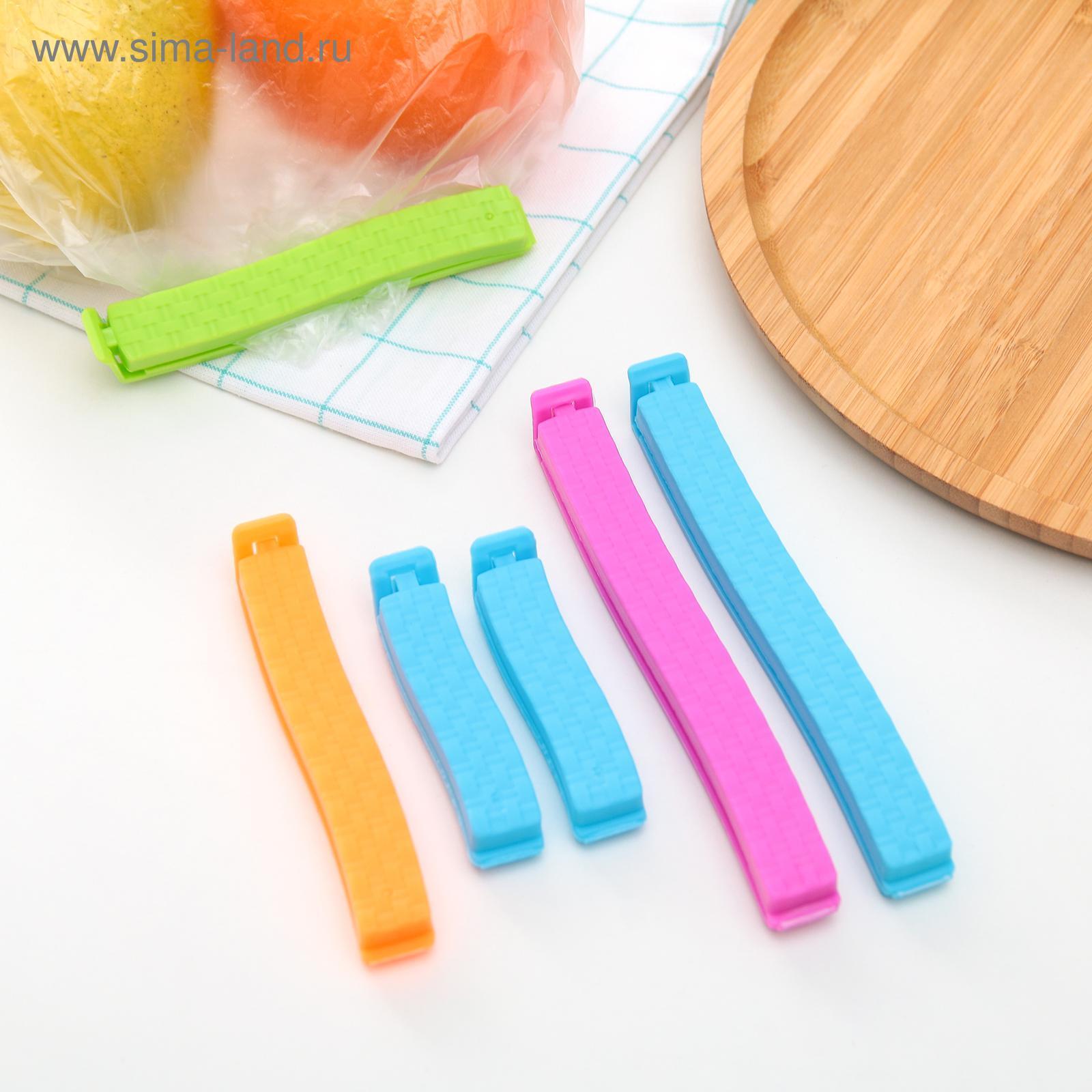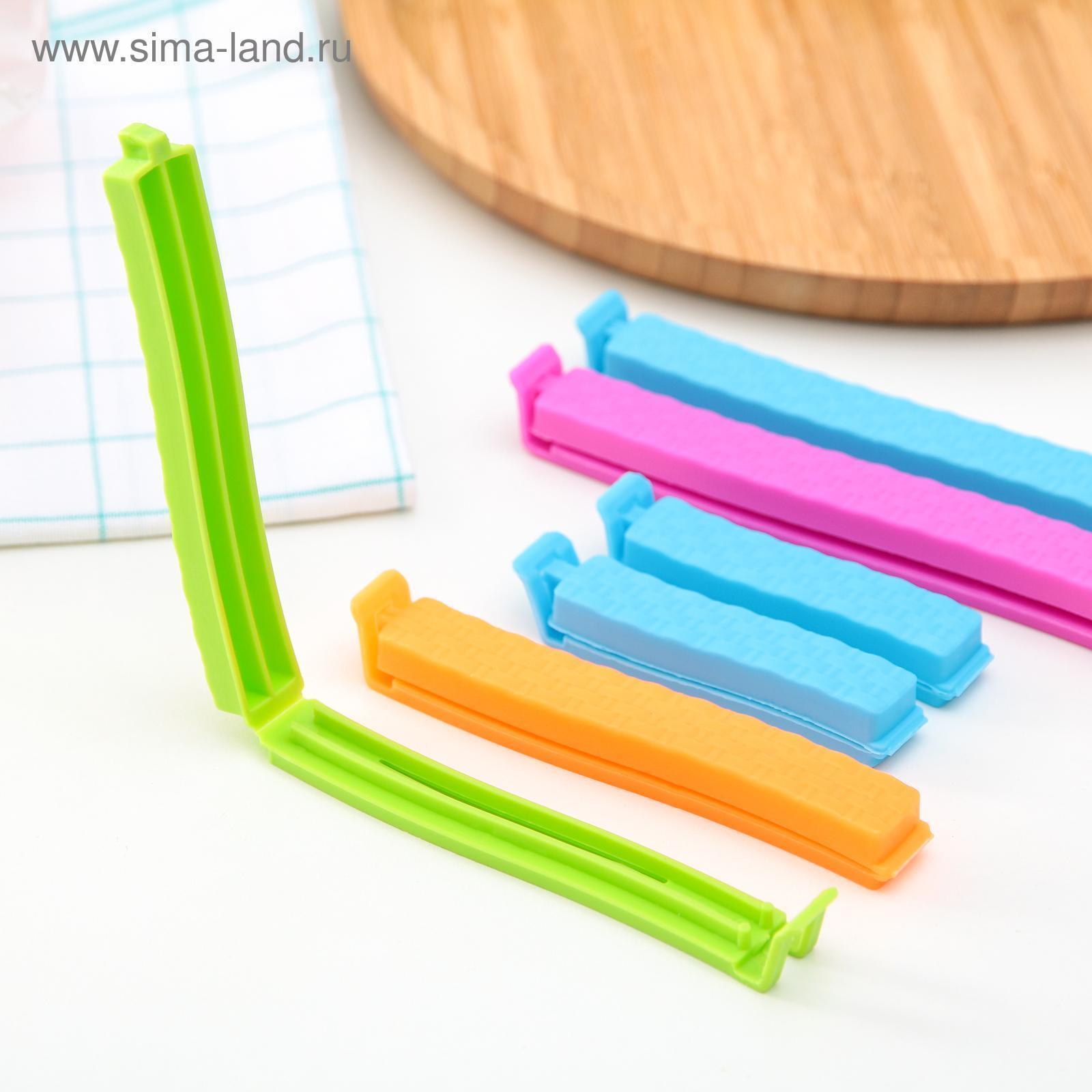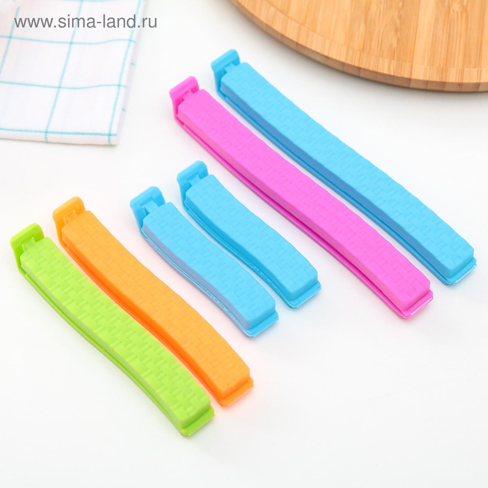 Зажимы для пакетов Доляна, 14/11/7 см, 6 шт, пищевой пластик, герметичные, цвет МИКС