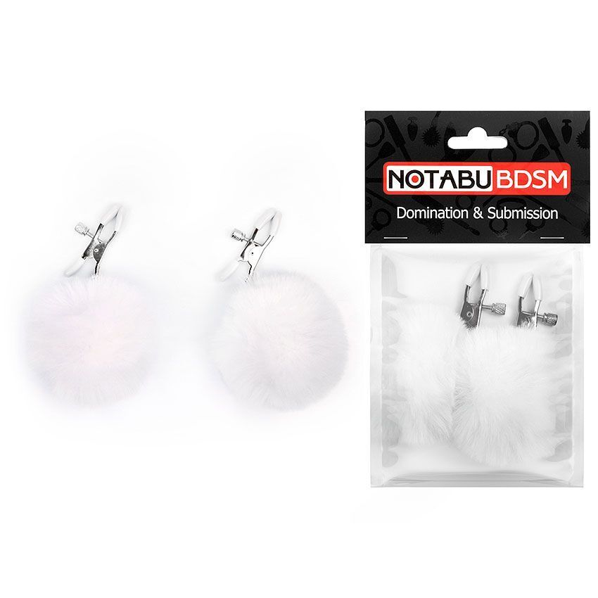 Зажимы для сосков Notabu с меховыми помпонами, регулировка силы, белый, металл