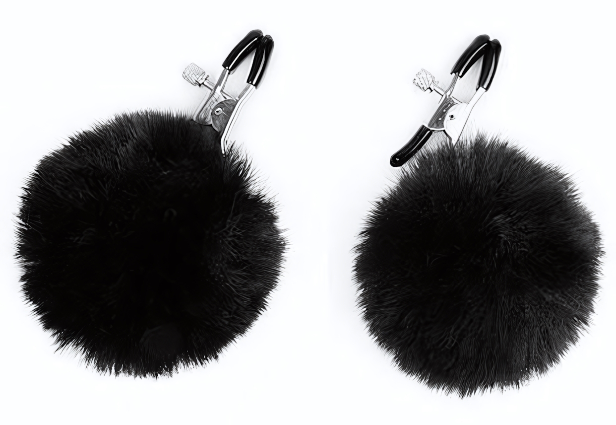 Эти зажимы с мягкими пушистыми помпонами подарят новые ощущения и эстетическое удовольствие. Черный цвет и сочетание металла с мехом создают элегантный BDSM-аксессуар.