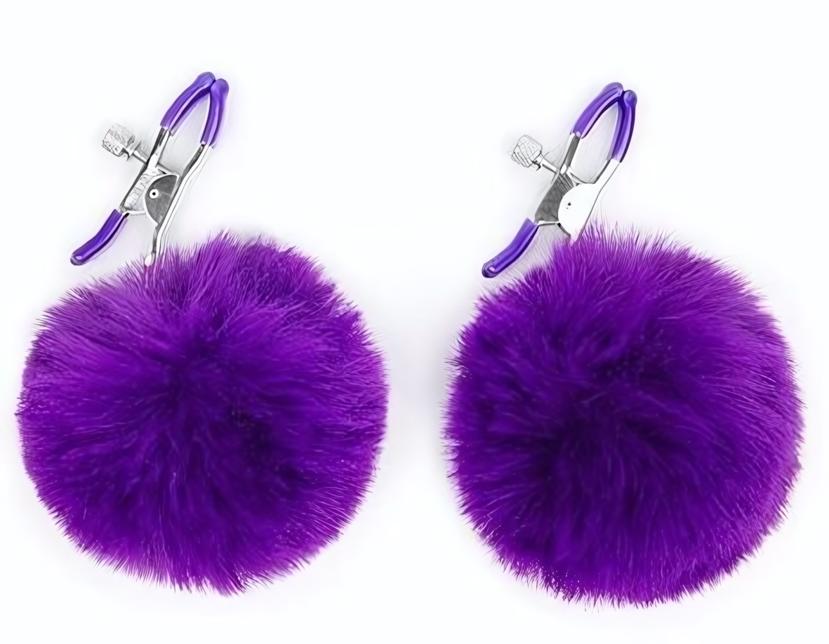 Оригинальные зажимы для сосков с фиолетовым пушком