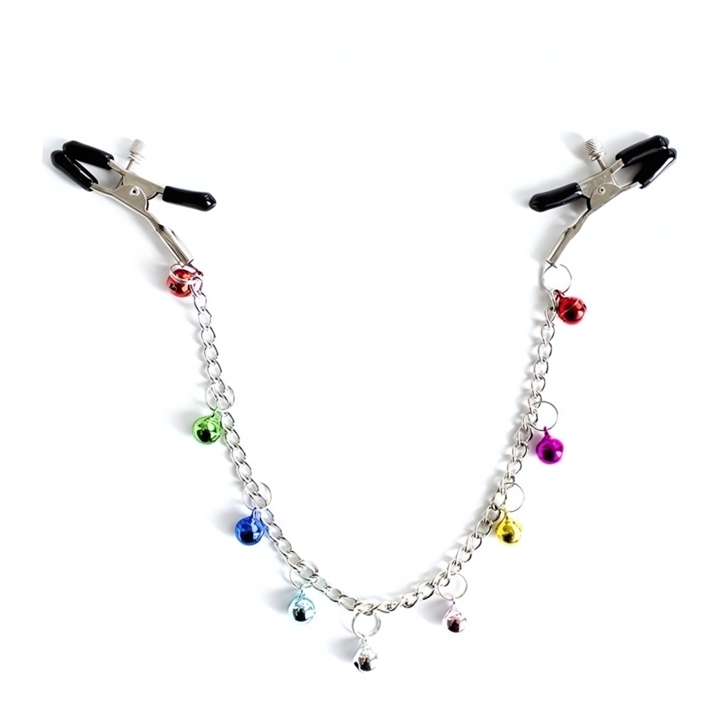 Стильные зажимы с цепочкой и разноцветными бубенчиками создадут неповторимую атмосферу близости. Изысканный дизайн сочетает функциональность и эстетику, делая каждый момент особенным.