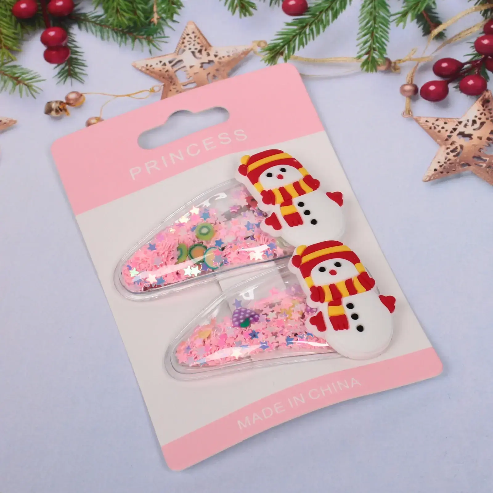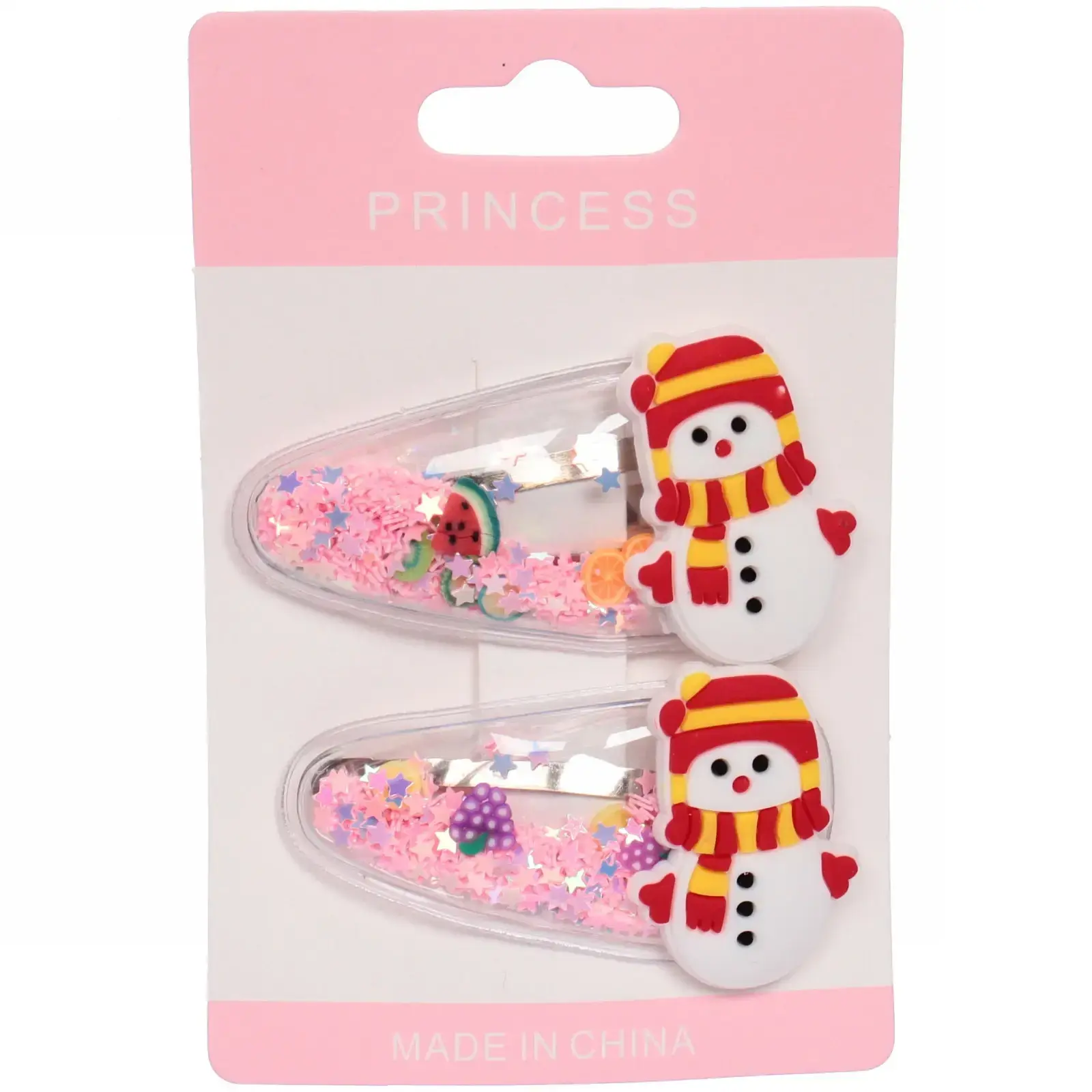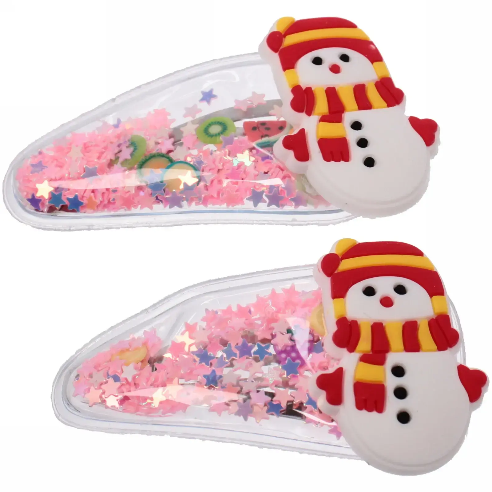 Зажимы для волос «Снеговичок Сноу», 2 шт, 5 см, новогодний дизайн с блестками и фруктами, металл и пвх