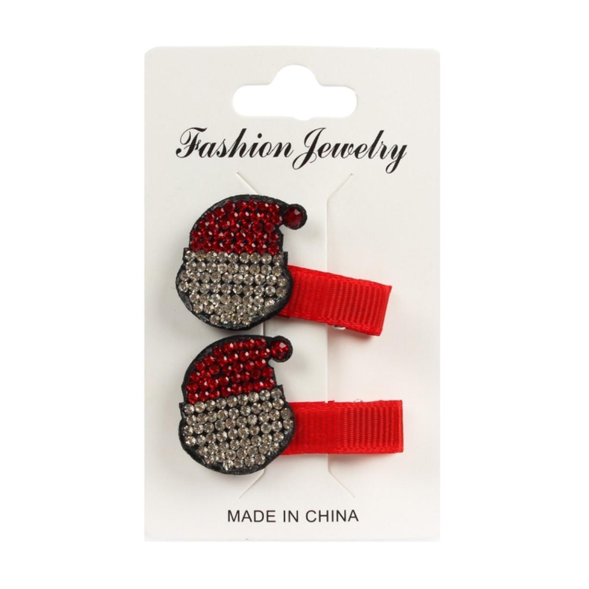 Изготовленные из прочных материалов — пластика и металла, эти заколки сочетают в себе практичность и декоративную привлекательность. Они украшены ярким дизайном в виде шапок Санты, украшены блестящими стразами, что придает им праздничный и эффектный вид.
