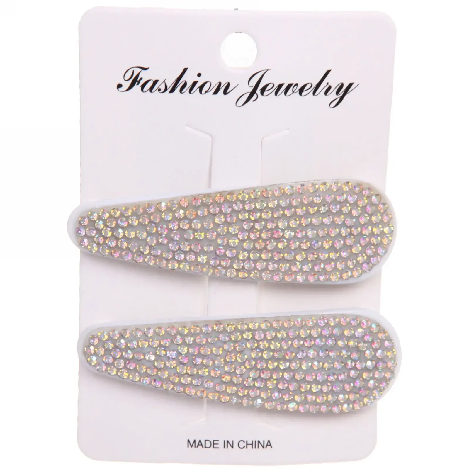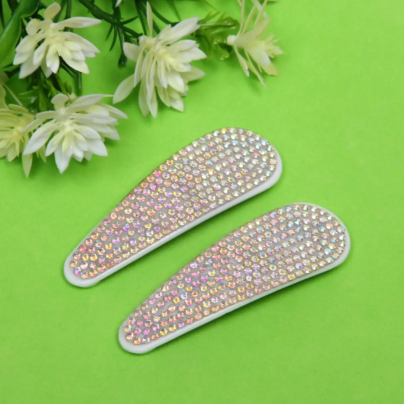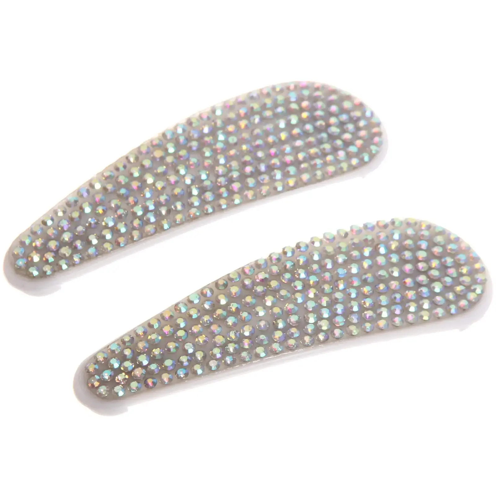 Зажимы для волос с хромированными стразами, белые, 8х2,5 см, металл и пластик, дизайн «капля»