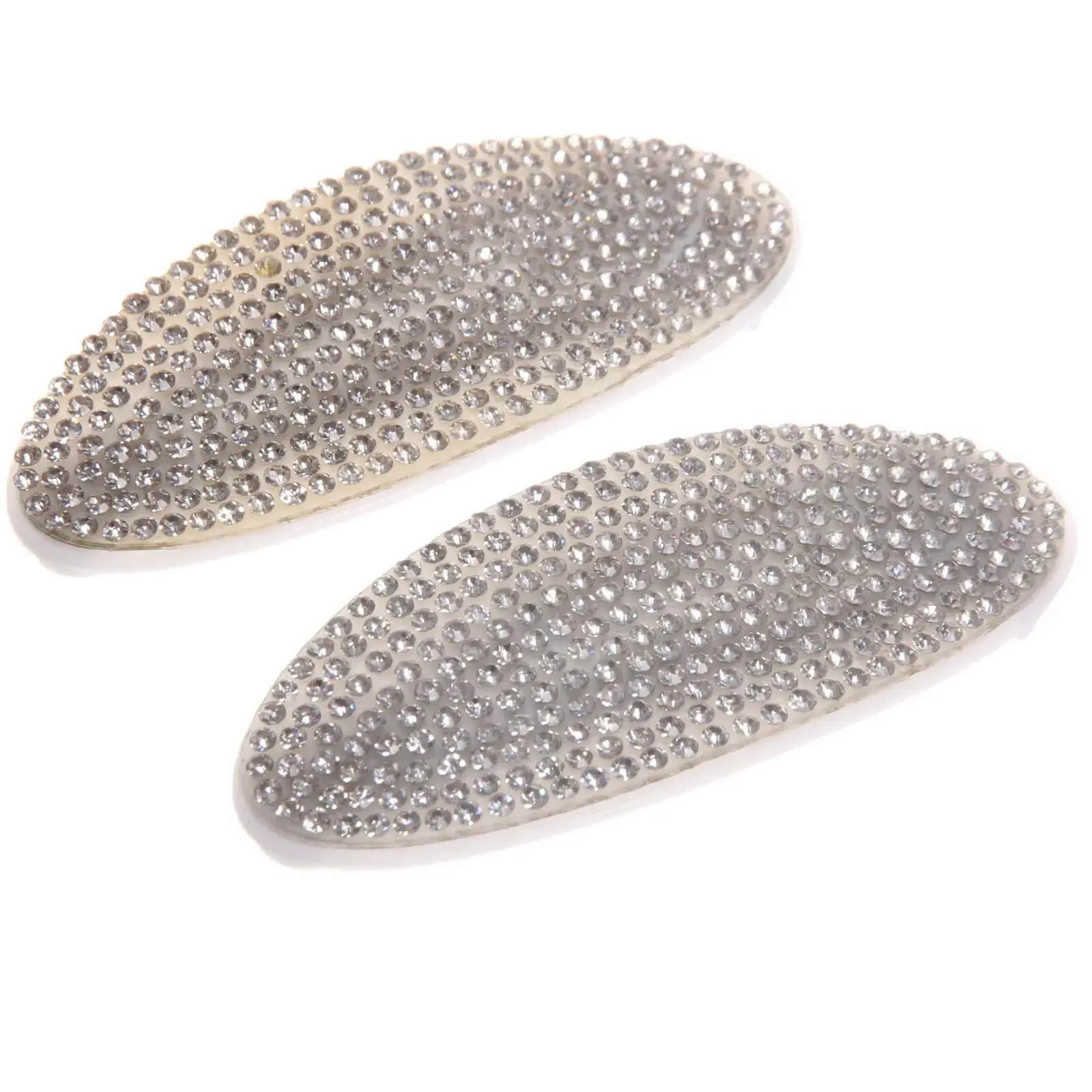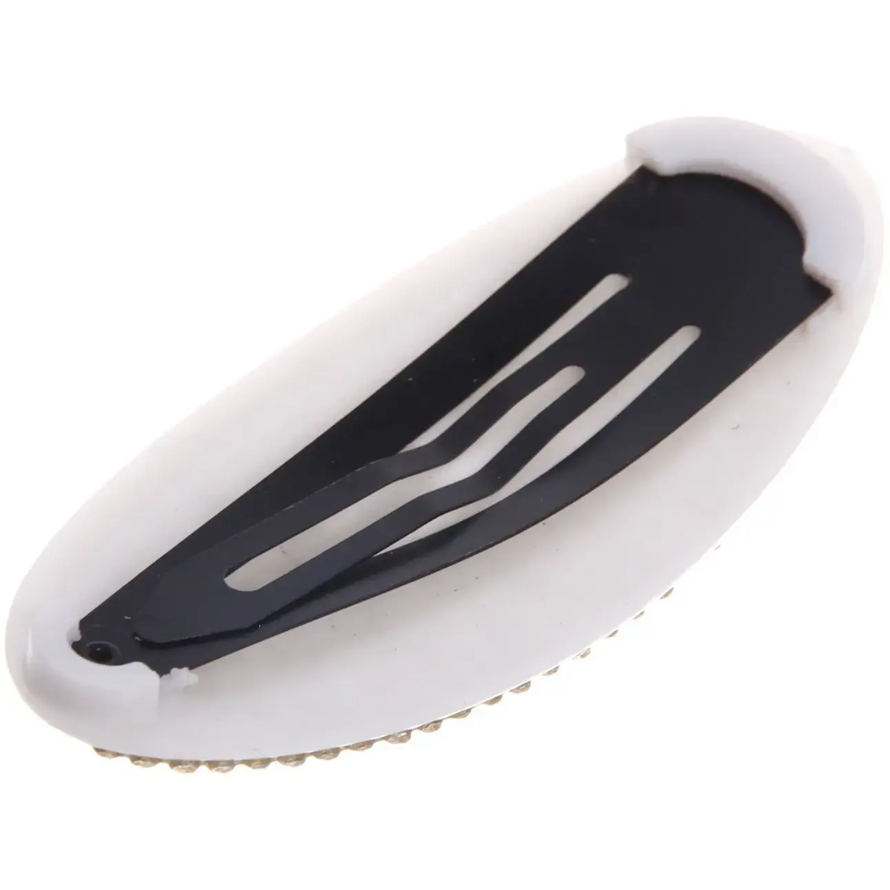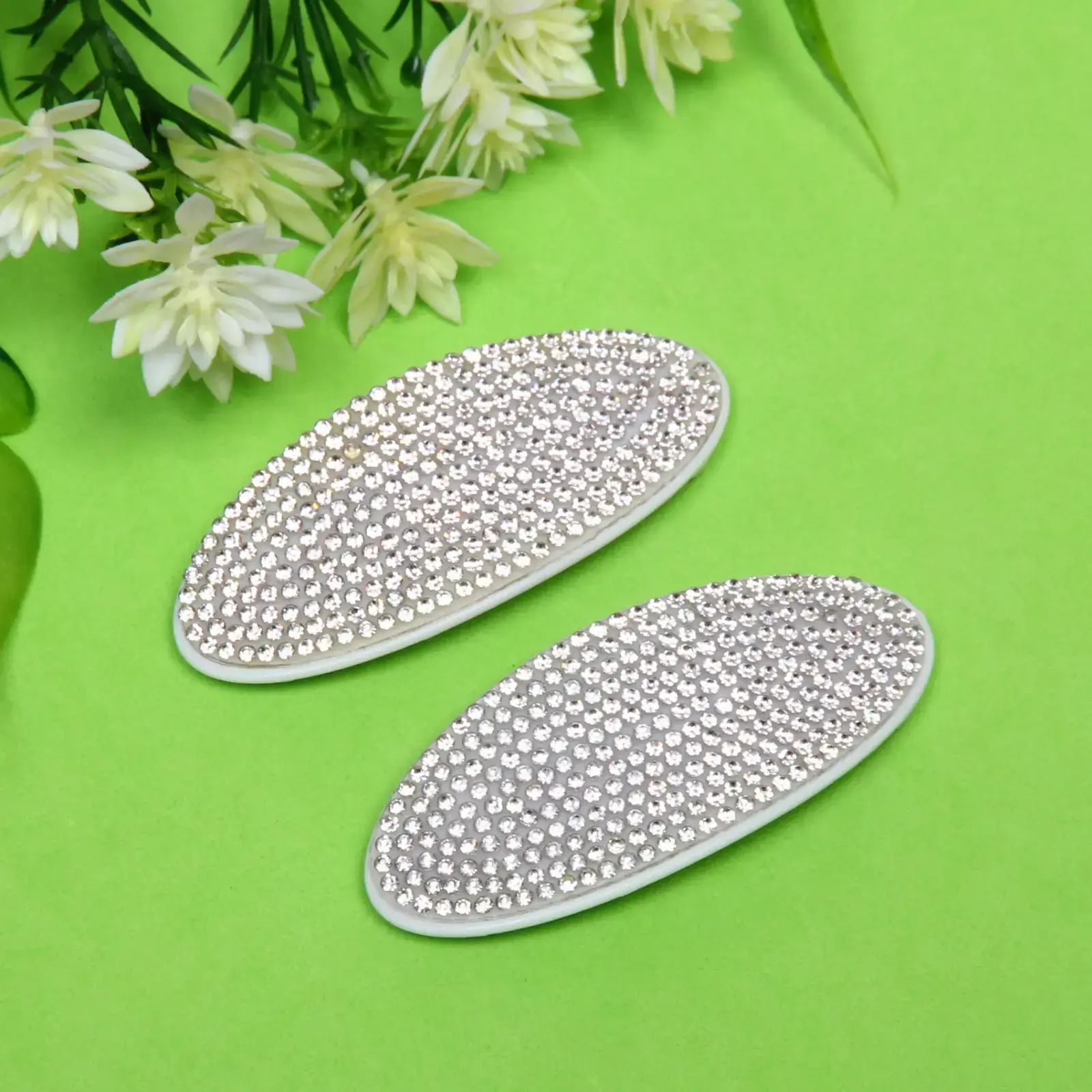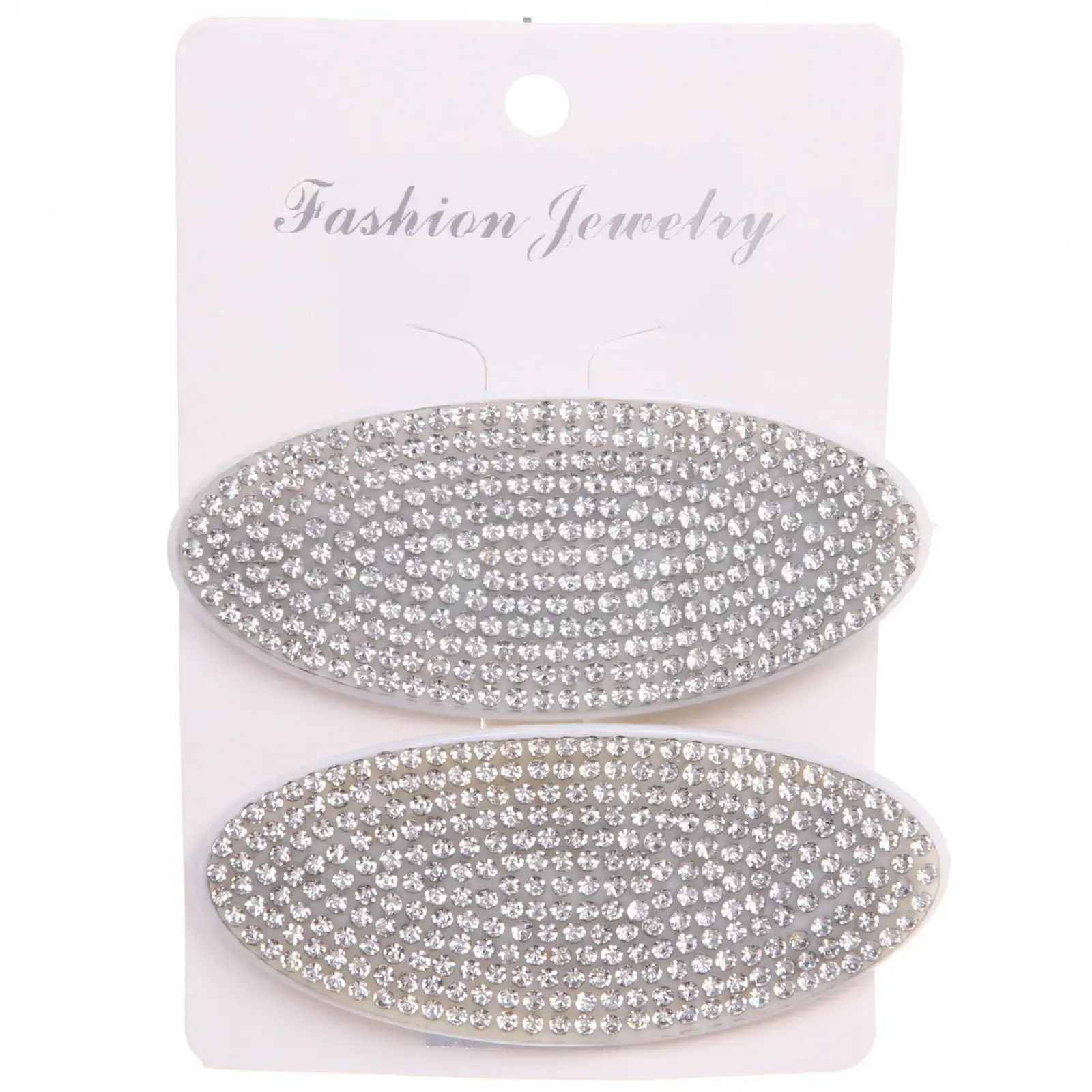 Зажимы для волос с блестящими стразами, овал, белый цвет, металлическая основа, 8х2,5 см