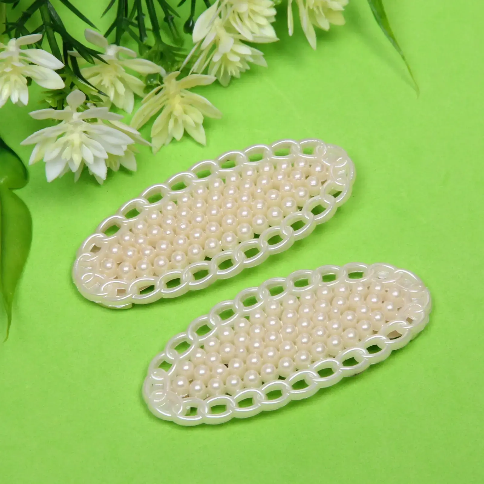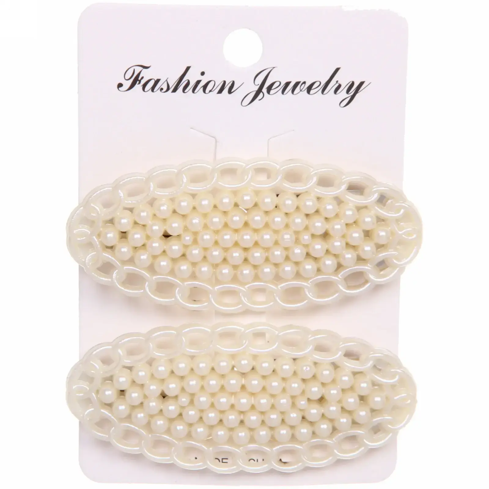 Зажимы для волос «KRASA - Aks», 2 шт, овальные, белые, металл/пластик, 8х2,5 см