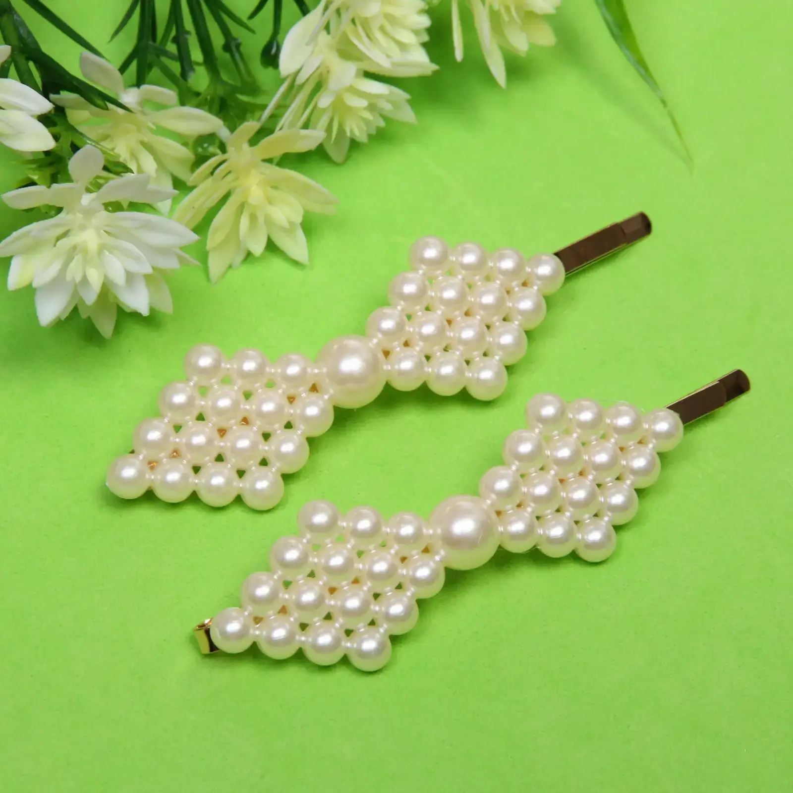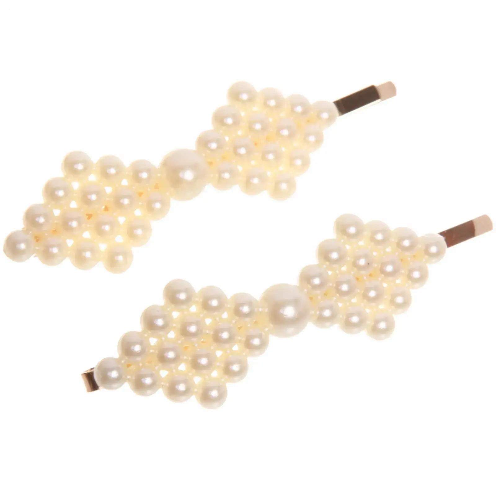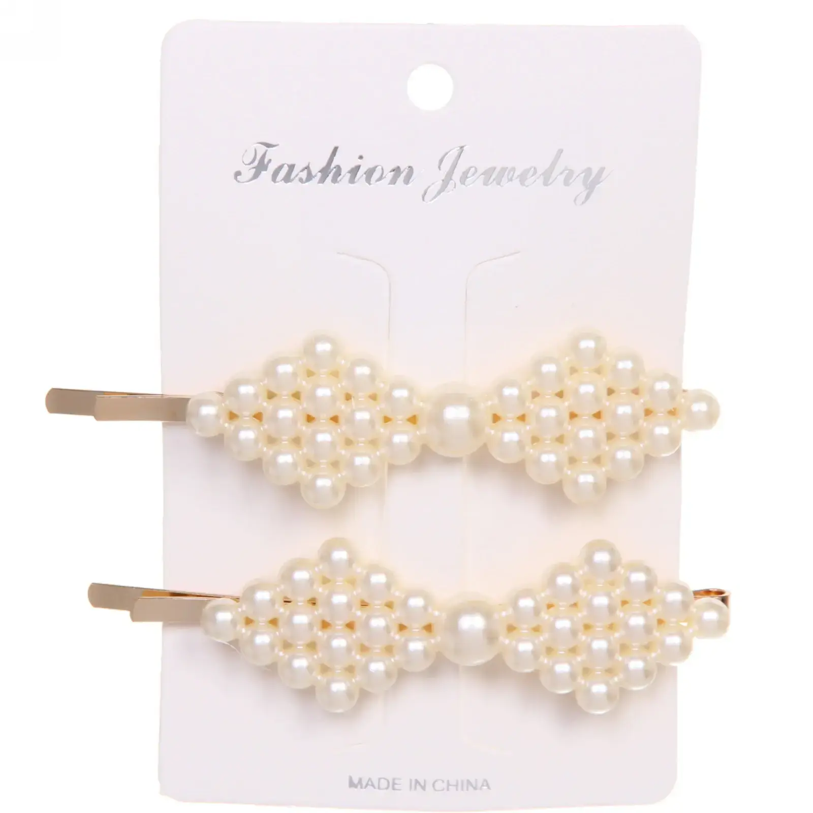 Зажимы для волос 2шт жемчужные ромбовидные, металл/пластик, белые, 8х2,5см, стильные аксессуары