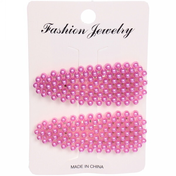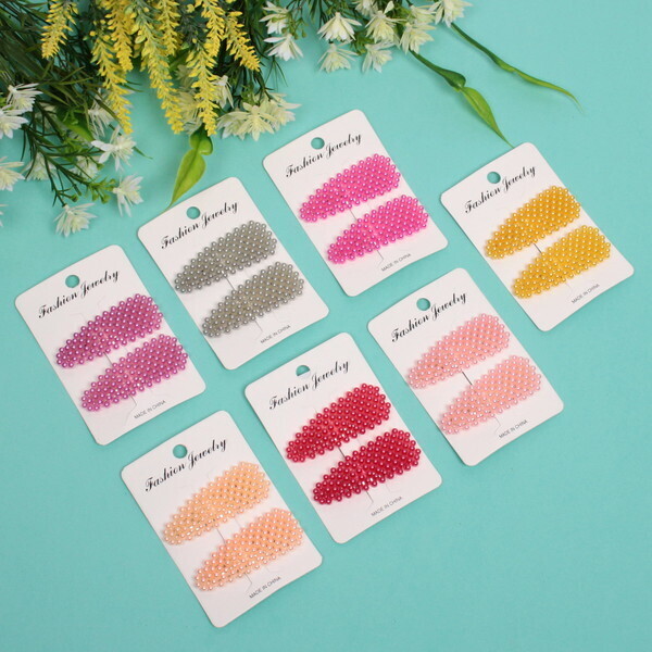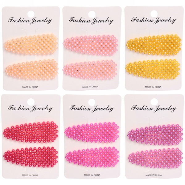 Зажимы для волос 2шт, овальные с жемчужными бусинами, микс 6 цветов, металл/пластик, 6,5х2,5см