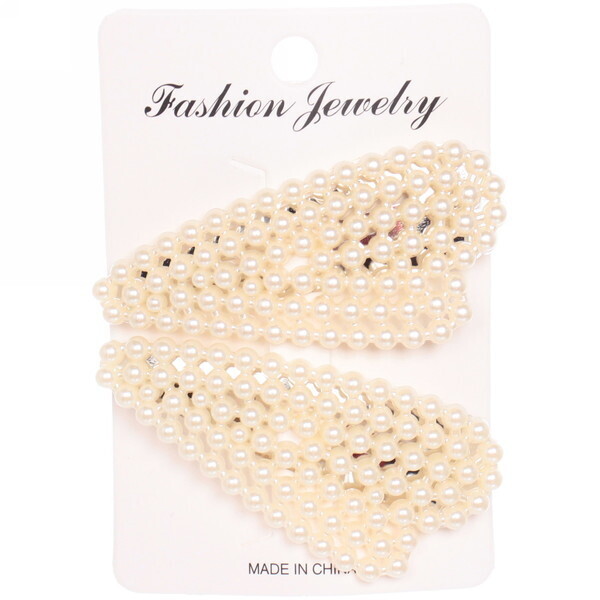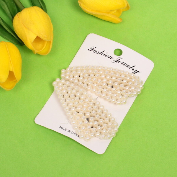 Размер зажимов составляет 7,5 см в длину и 2,5 см в ширину, что делает их компактными и удобными для хранения. Белый цвет и жемчужный эффект позволяют легко сочетать их с различными стилями одежды. Эти зажимы для волос — отличный выбор для тех, кто ценит качество и стиль в аксессуарах.