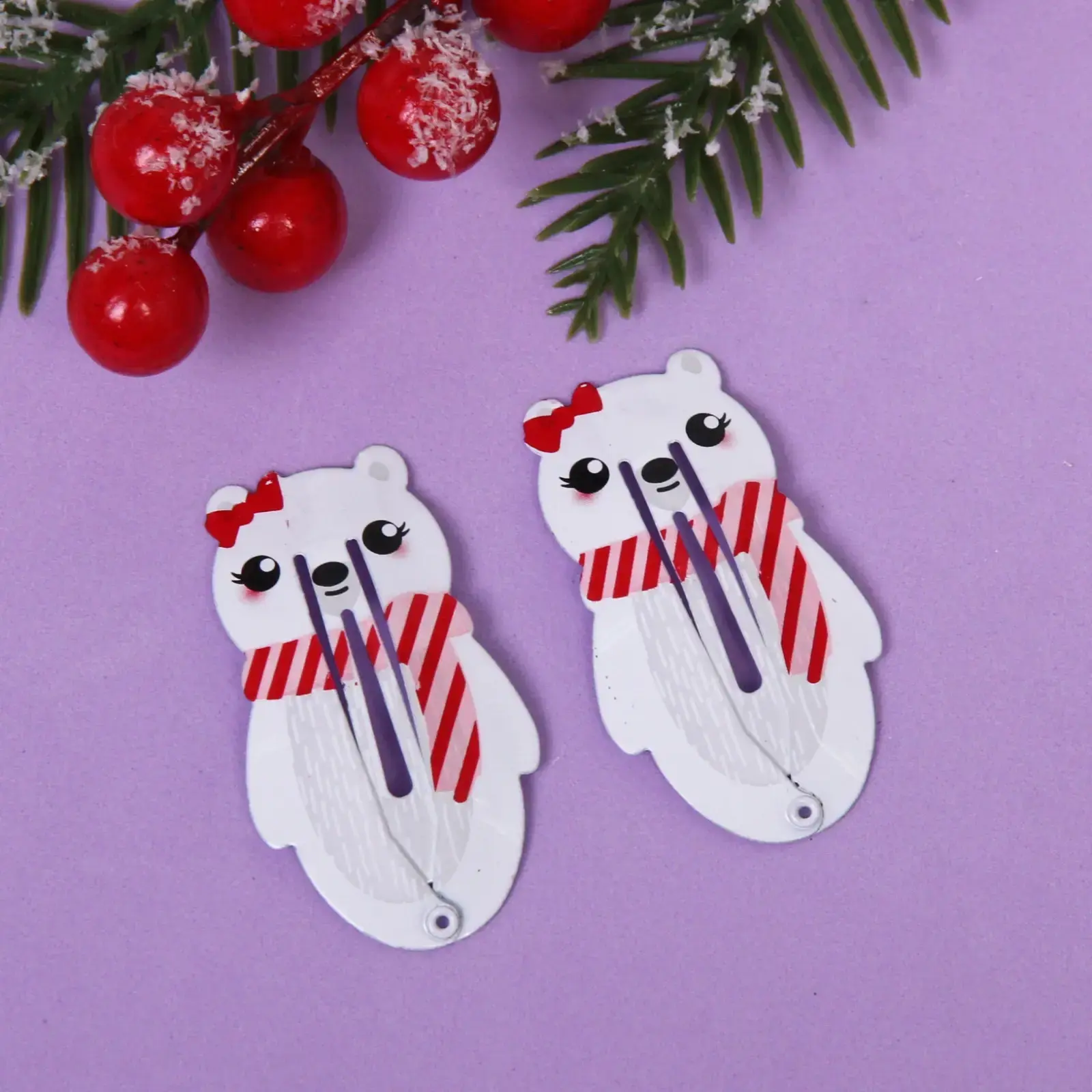 Зажимы для волос «Медвежата», новогодний дизайн с бантиком, 2 шт, 5х2 см, металл