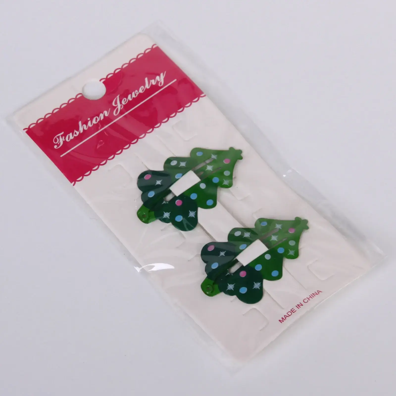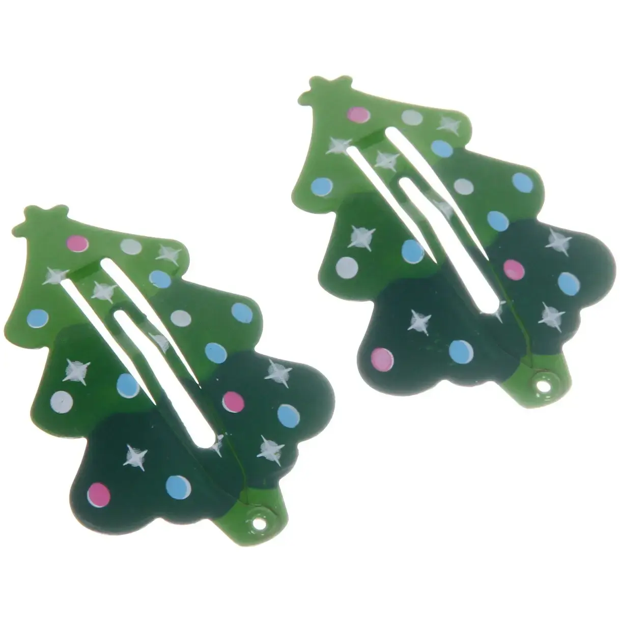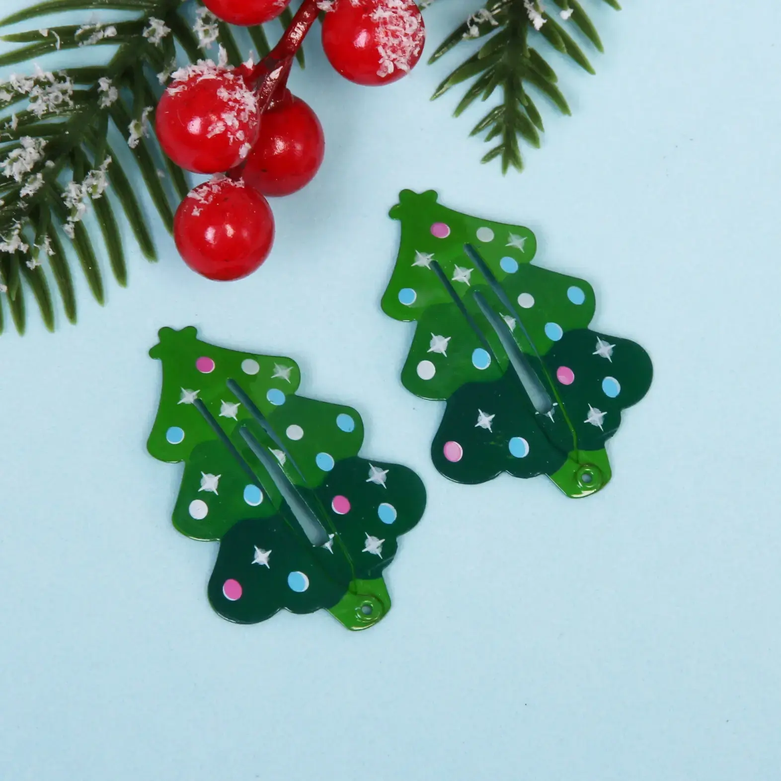 Размер зажимов составляет 5х2 см, что делает их компактными и удобными для хранения. Они выполнены в зеленом цвете с яркими декоративными элементами, такими как белые, розовые и голубые точки, что придает им праздничный вид. Эти зажимы станут отличным дополнением к вашему новогоднему наряду и подарком для близких.