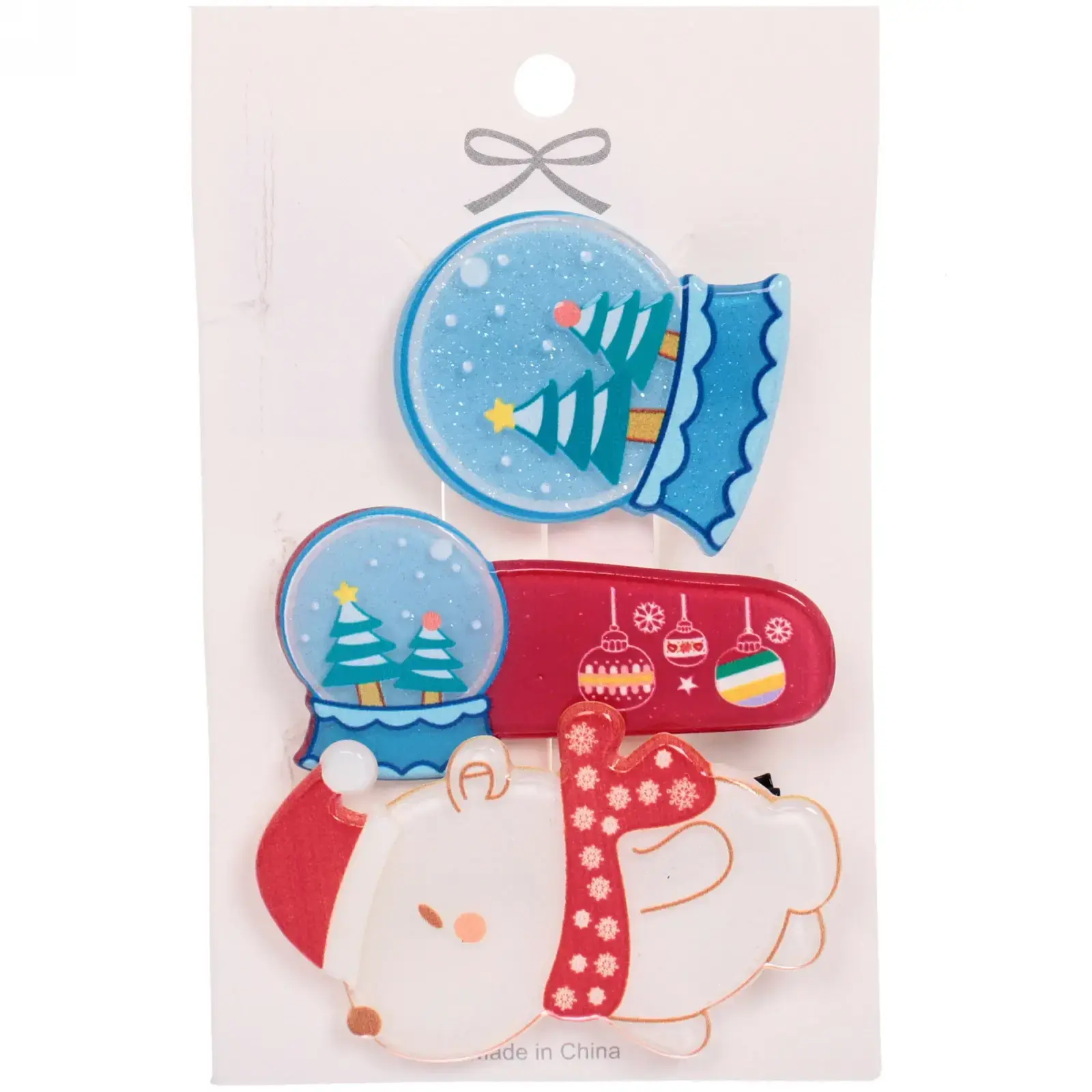 Зажимы для волос 'Christmas story', 3шт, 6,5*10,5см, пластик, новогодний дизайн