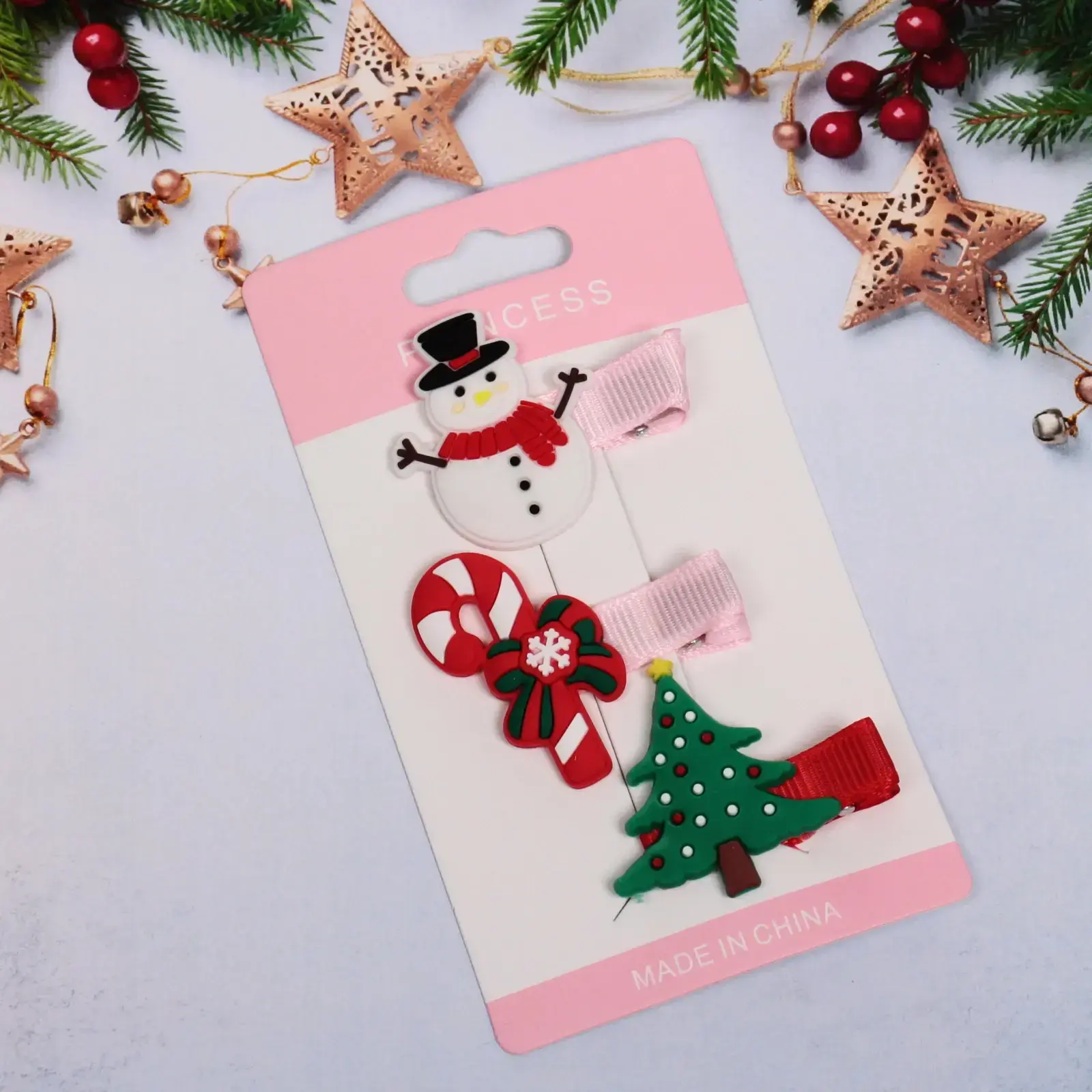 Эти яркие и веселые зажимы для волос идеально подойдут для праздничных мероприятий и помогут вам добавить немного волшебства в ваш образ. Каждый зажим оформлен в уникальном новогоднем стиле: снеговик с красным шарфом, конфета с зелёной лентой и ёлка с яркими элементами. Они не только красивы, но и удобны в использовании, что делает их отличным выбором для детей и взрослых.
