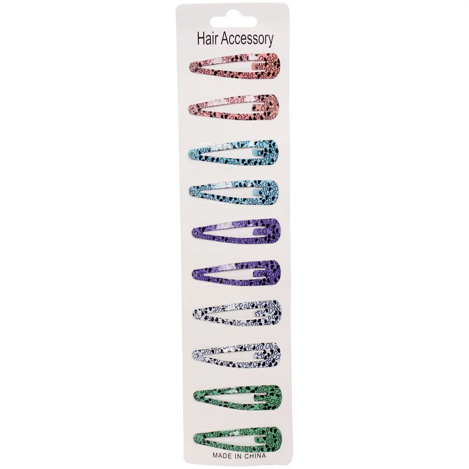 Зажимы изготовлены из качественного металла, что обеспечивает их долговечность и надежность. Они имеют удлиненную форму с закругленными концами, что делает их безопасными для детей. Яркая пленка с узором придает им привлекательный вид и защищает от повреждений. Эти зажимы — отличный выбор для создания стильных и удобных причесок в любое время года.