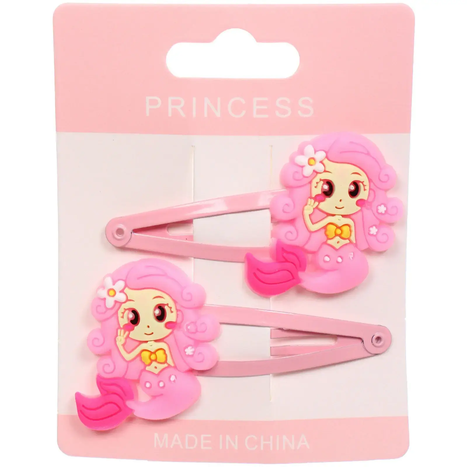Размеры зажимов составляют 5.5 см в длину и 1 см в ширину, что делает их идеальными для детских волос. Они выполнены в ярко-розовом цвете и украшены фигуркой русалки с длинными розовыми волосами. Упаковка также оформлена в светлом розовом цвете с надписью «PRINCESS», что делает их отличным подарком для девочек.