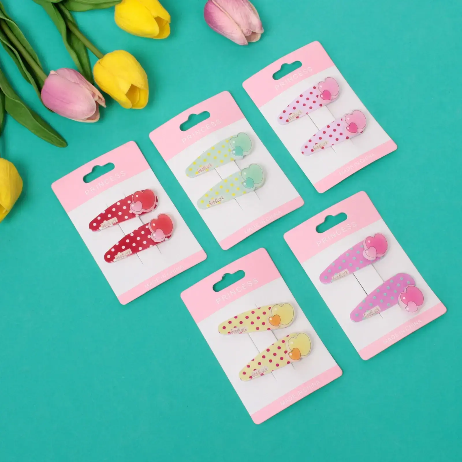 Размер каждого зажима составляет 5х2 см, что делает их идеальными для детских волос. Материалы: металл и пластик, что обеспечивает прочность и легкость. Эти зажимы не только функциональны, но и стильны, что делает их отличным выбором для маленьких модниц.