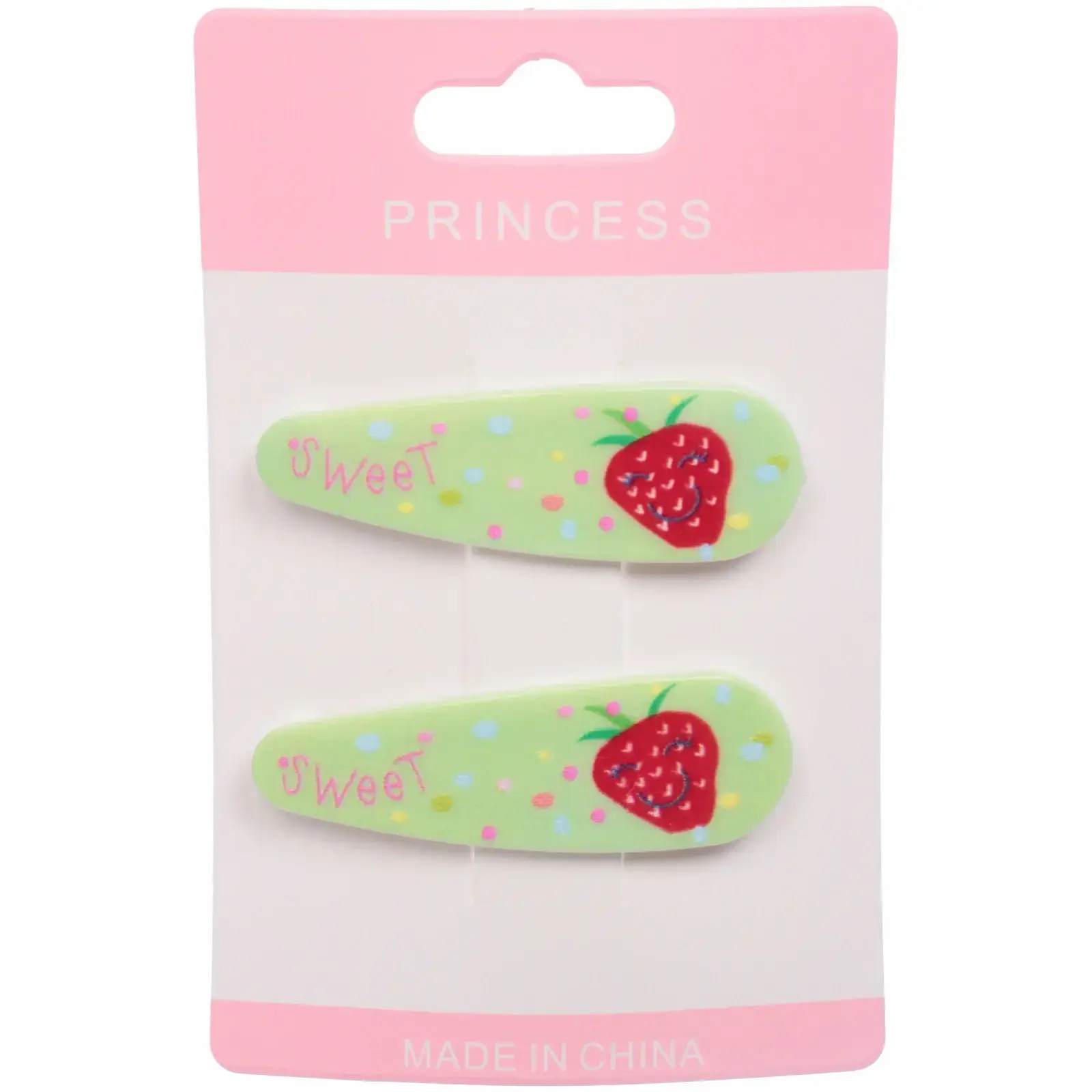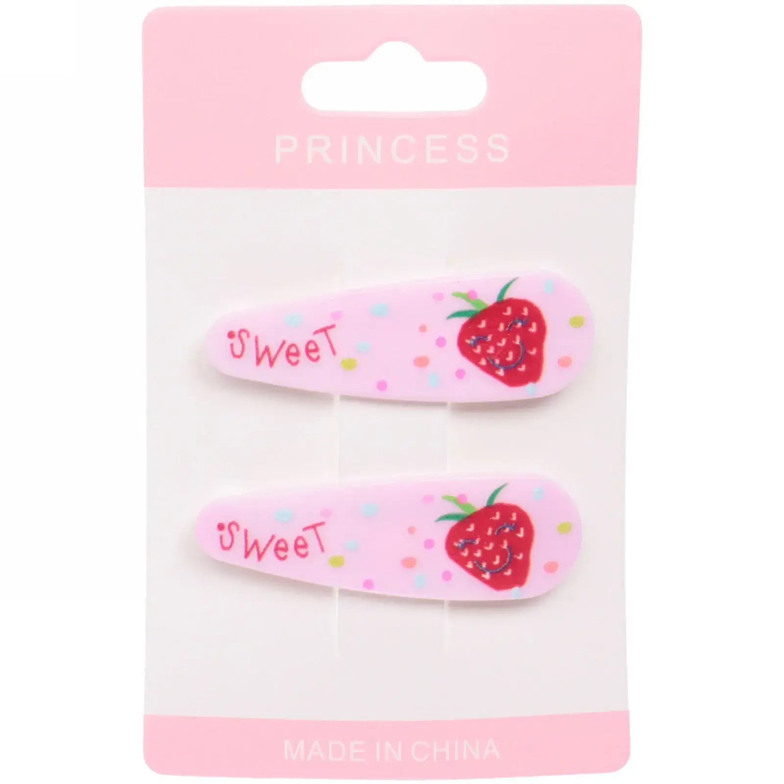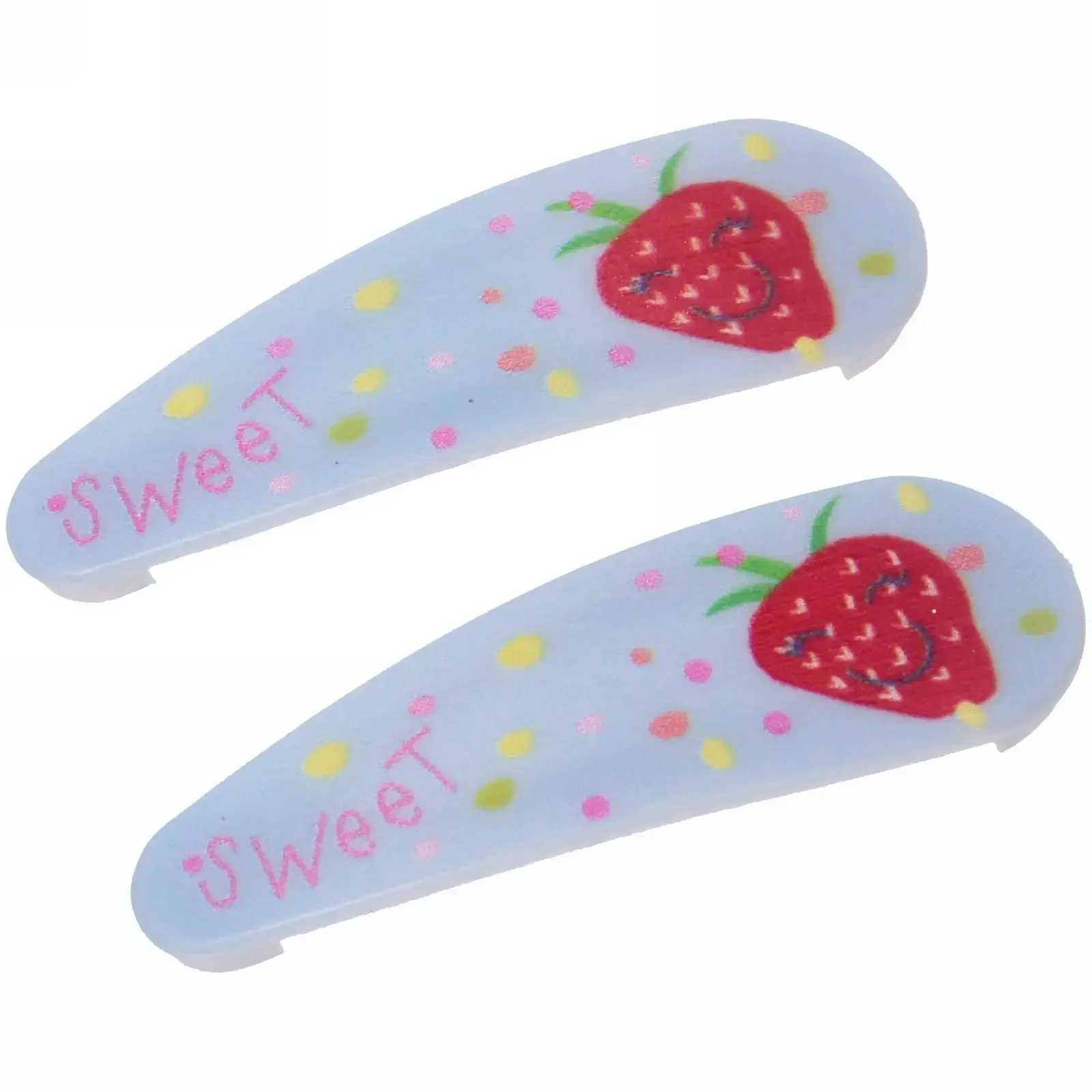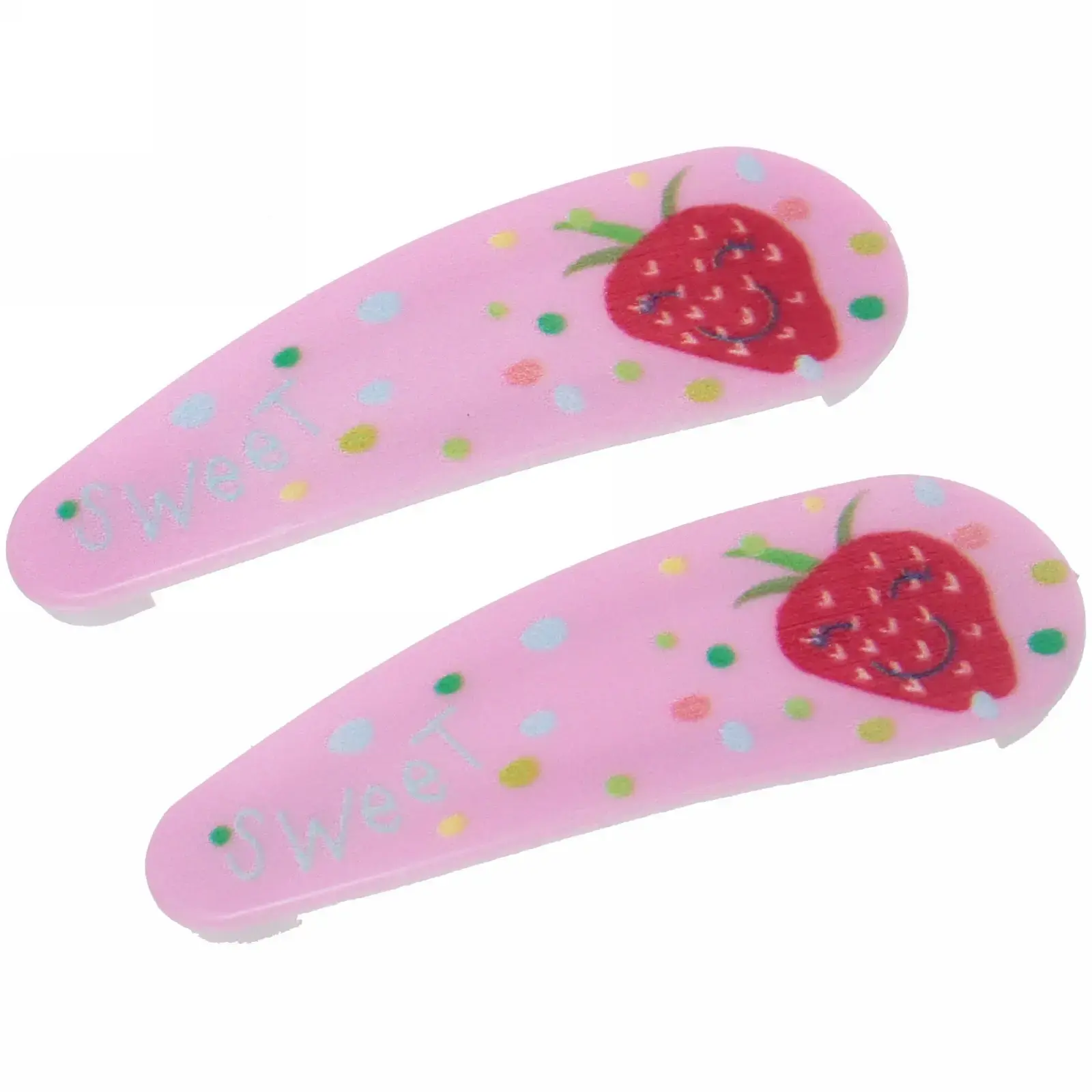 Каждый набор включает две заколки, выполненные в шести различных цветах, что позволяет легко сочетать их с любым нарядом. Изготовленные из качественных материалов, они обеспечивают долговечность и надежность. Яркие цвета и веселые рисунки в виде клубники и надписи «Sweet» делают их привлекательными для детей.