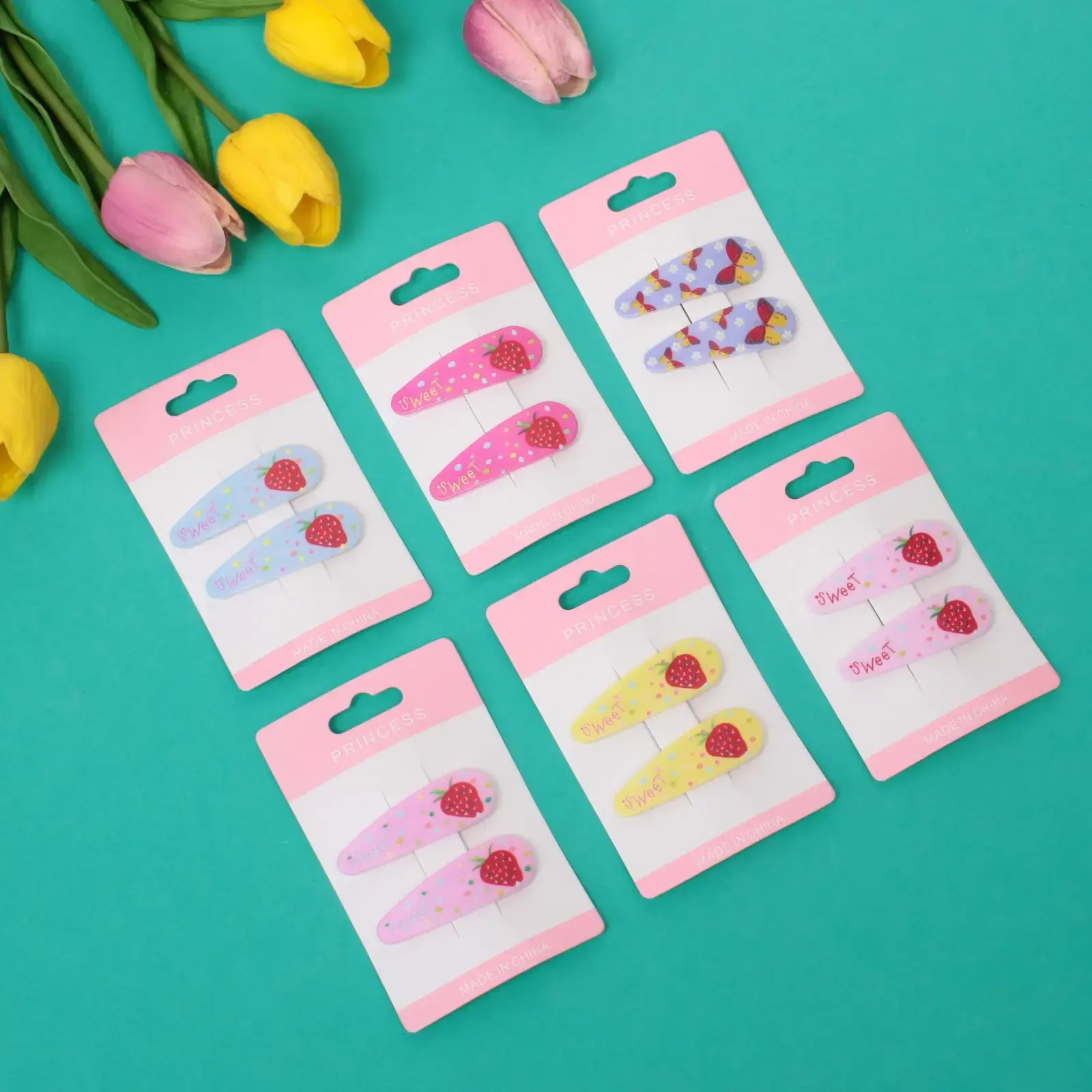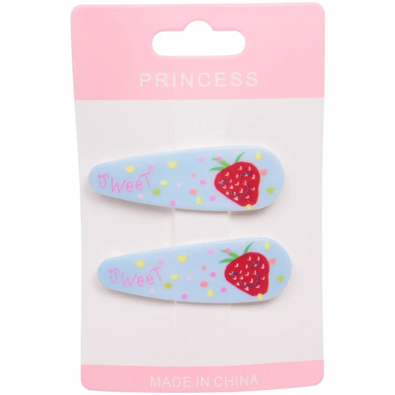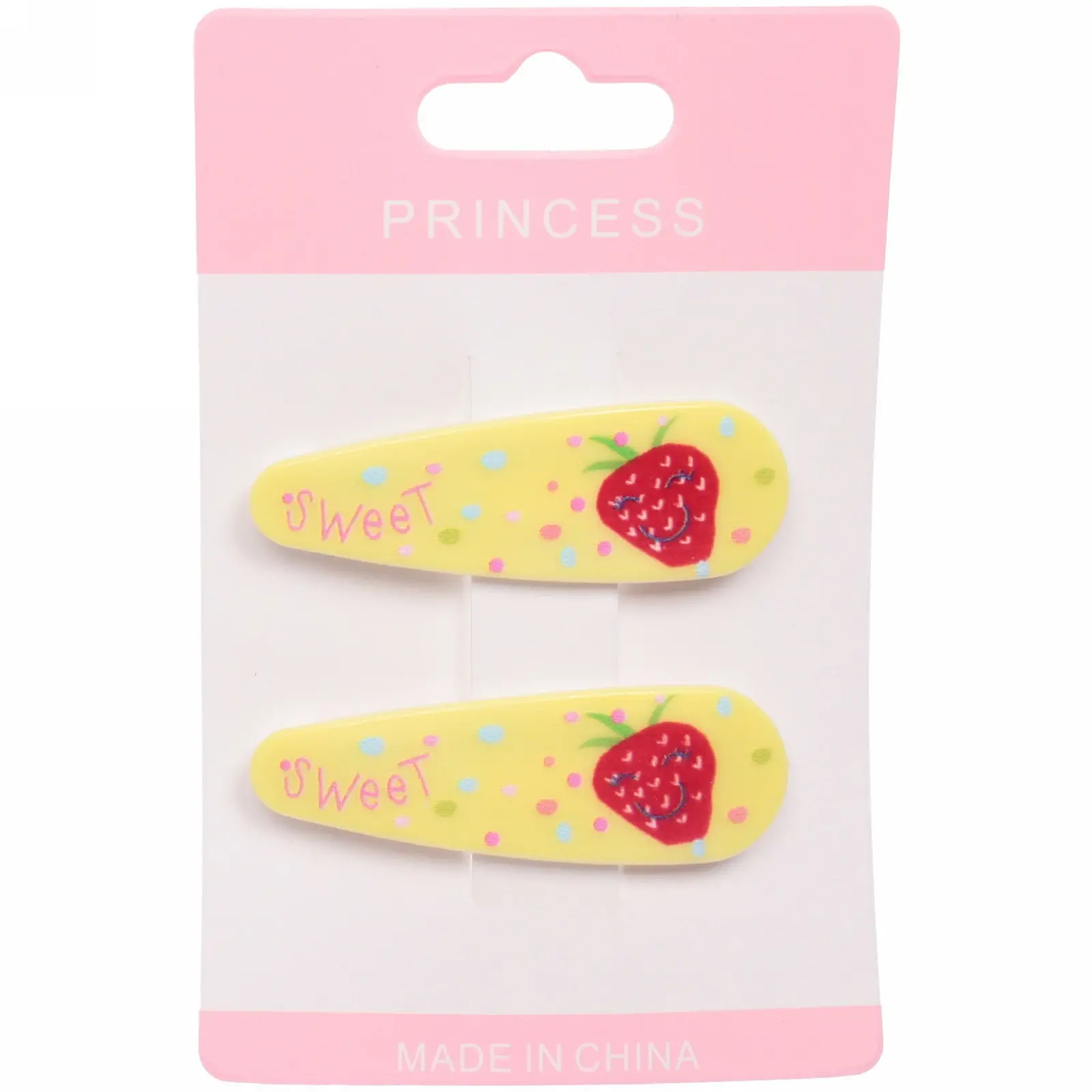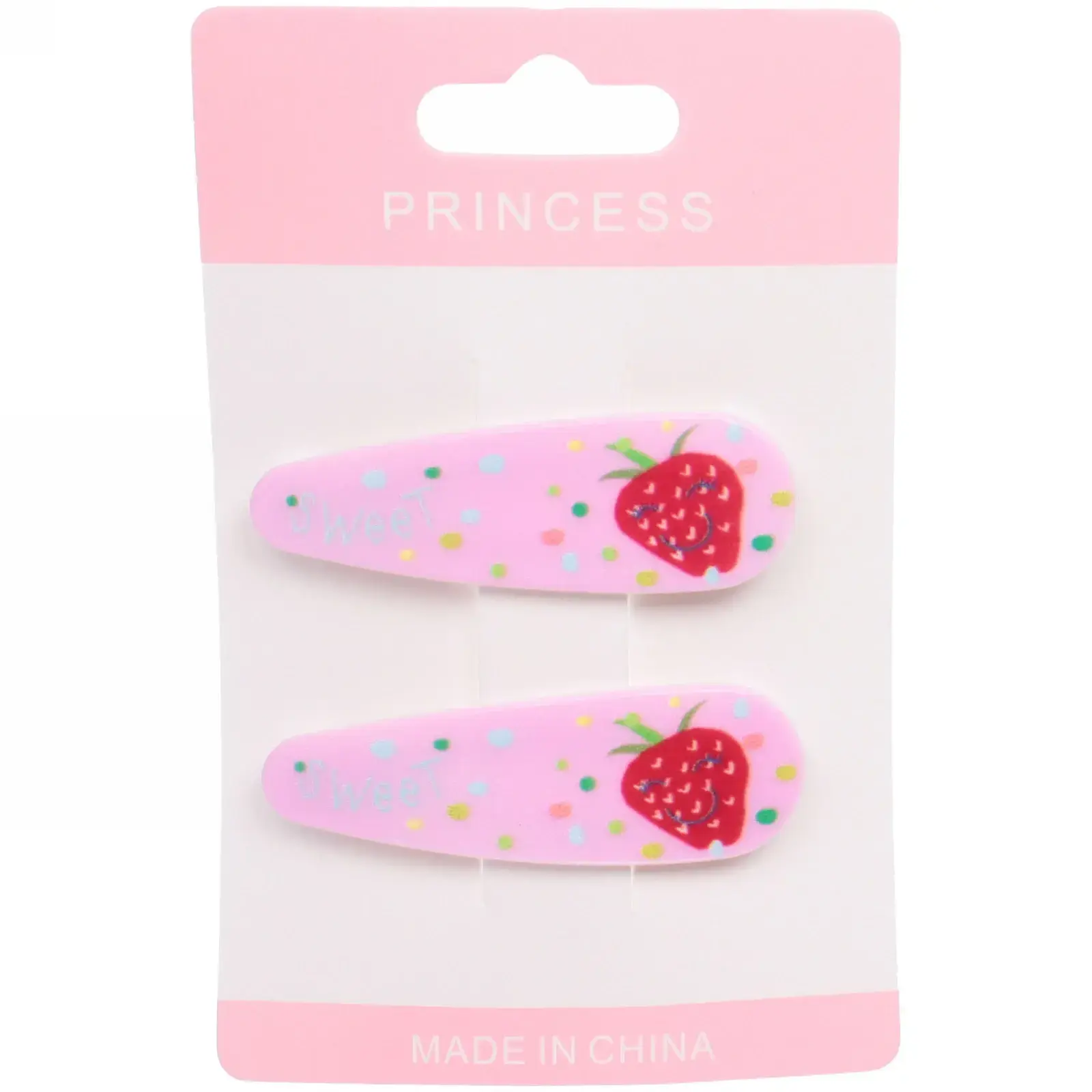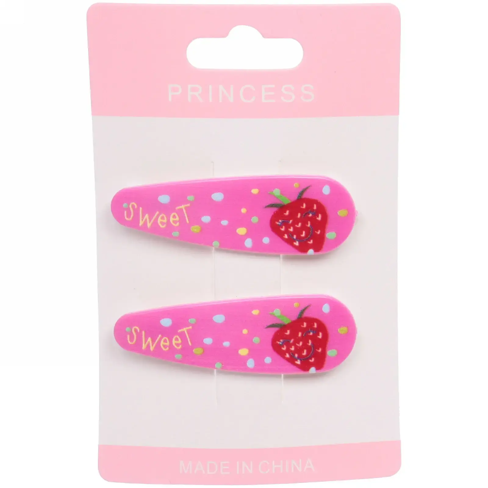 Каждый набор включает две заколки, выполненные в шести различных цветах, что позволяет легко сочетать их с любым нарядом. Изготовленные из качественных материалов, они обеспечивают долговечность и надежность. Яркие цвета и веселые рисунки в виде клубники и надписи «Sweet» делают их привлекательными для детей.
