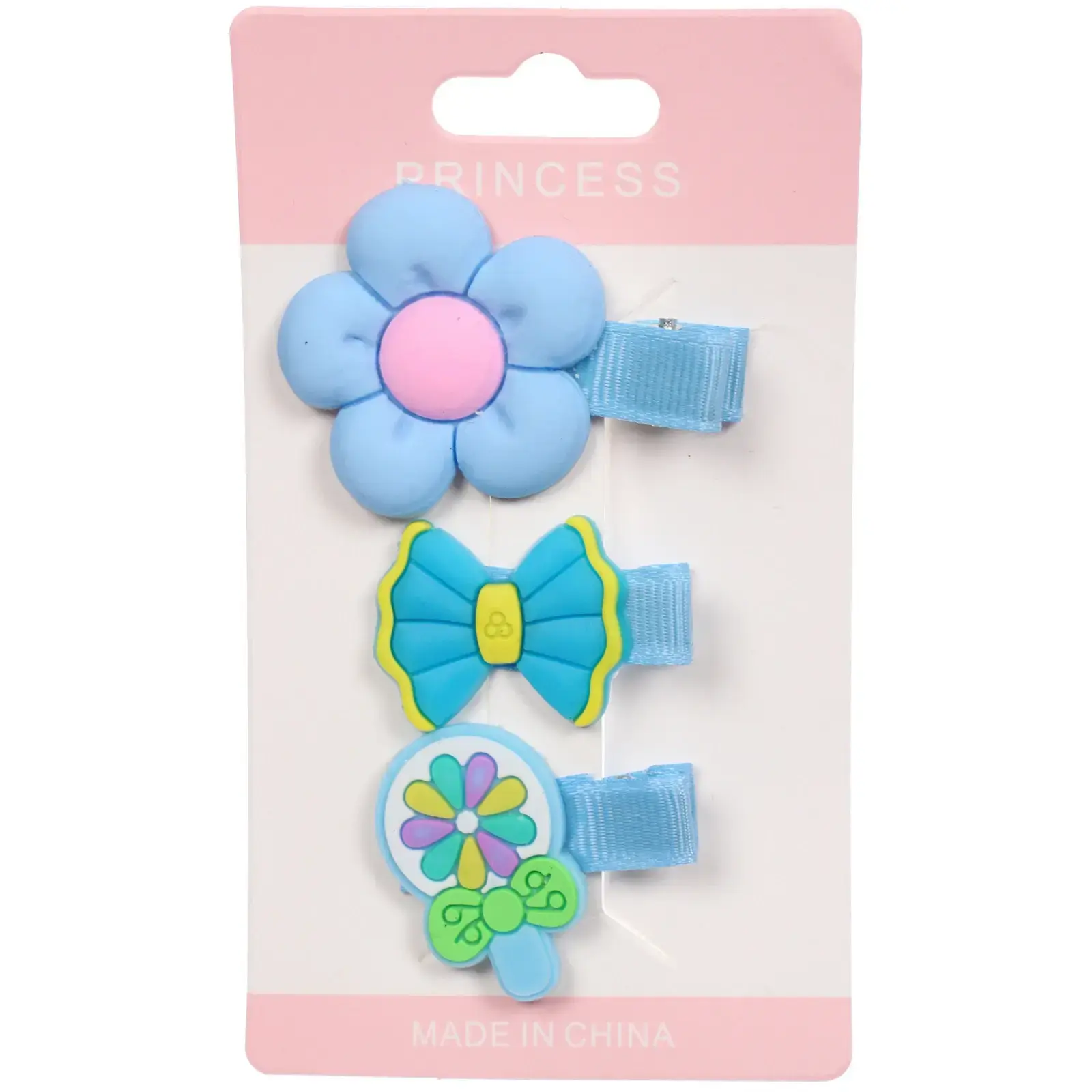 Каждый зажим изготовлен из качественных материалов: металл, ПВХ и текстиль, что обеспечивает долговечность и безопасность использования. Яркие цвета и оригинальные формы (цветок, бант и круглый дизайн) делают их привлекательными для детей. Набор включает три заколки, что позволяет комбинировать их в различных вариантах и создавать уникальные образы.