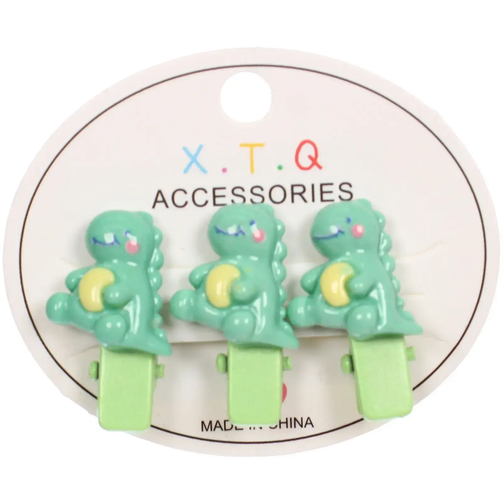Каждый зажим имеет размер 2.5 см, что делает их идеальными для детских волос. Они представлены в светло-зеленом цвете с детализированным дизайном дракончиков, что добавляет игривости и веселья в каждую прическу. Упаковка включает блистер и пакет с подвесом, что удобно для хранения и демонстрации на витрине.