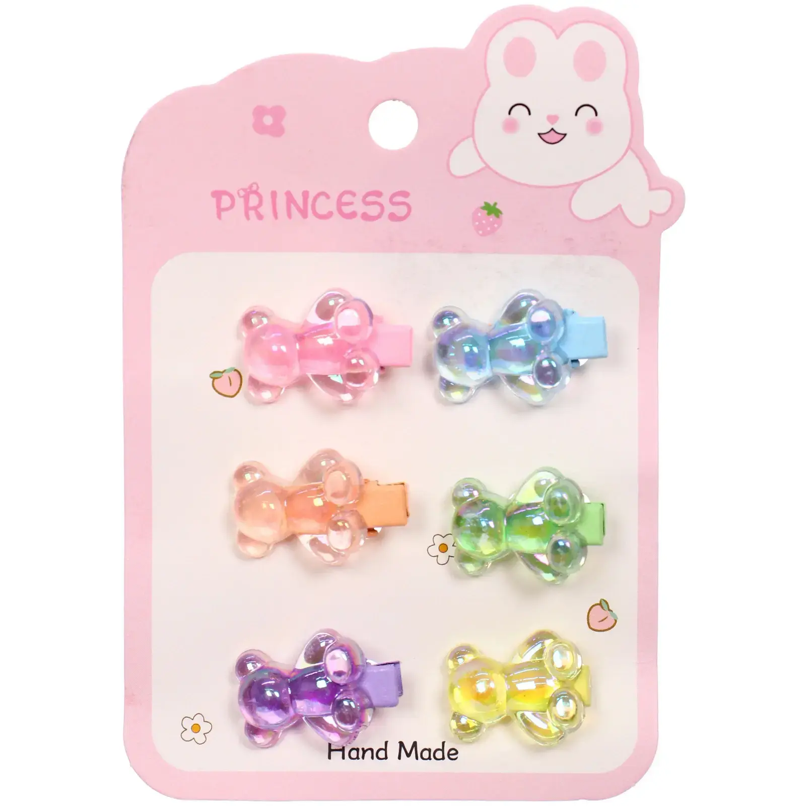 Каждый зажим имеет размер 2.5 см, что делает их удобными для использования на детских волосах. Упаковка включает шесть зажимов, которые удобно хранить и носить с собой. Эти аксессуары станут отличным дополнением к любому гардеробу и помогут вашему ребенку выглядеть стильно и привлекательно.