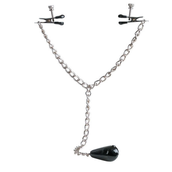 Зажимы крепятся к соскам с помощью надежных металлических зажимов, которые имеют регулируемую силу крепления благодаря гвоздикам-ограничителям. Это позволяет вам настроить уровень давления в зависимости от ваших предпочтений. Длина цепочки составляет 36 см, что обеспечивает комфортное расстояние между зажимами, а груз в форме капли добавляет дополнительное ощущение.