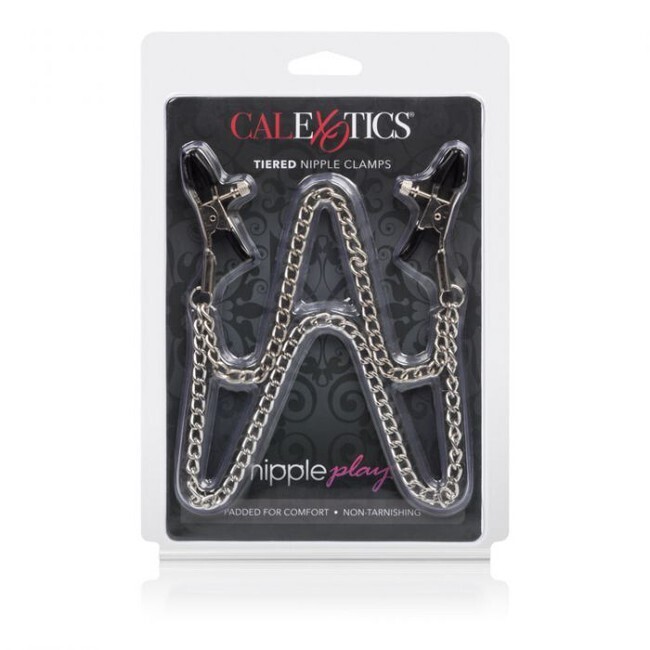 Зажимы для сосков с цепочкой «Tiered Nip Clamps» созданы для тех, кто ценит безопасность и эстетику. Мягкие силиконовые накладки и регулируемое давление обеспечивают комфорт даже при длительном использовании, а прочный металл гарантирует долговечность.
