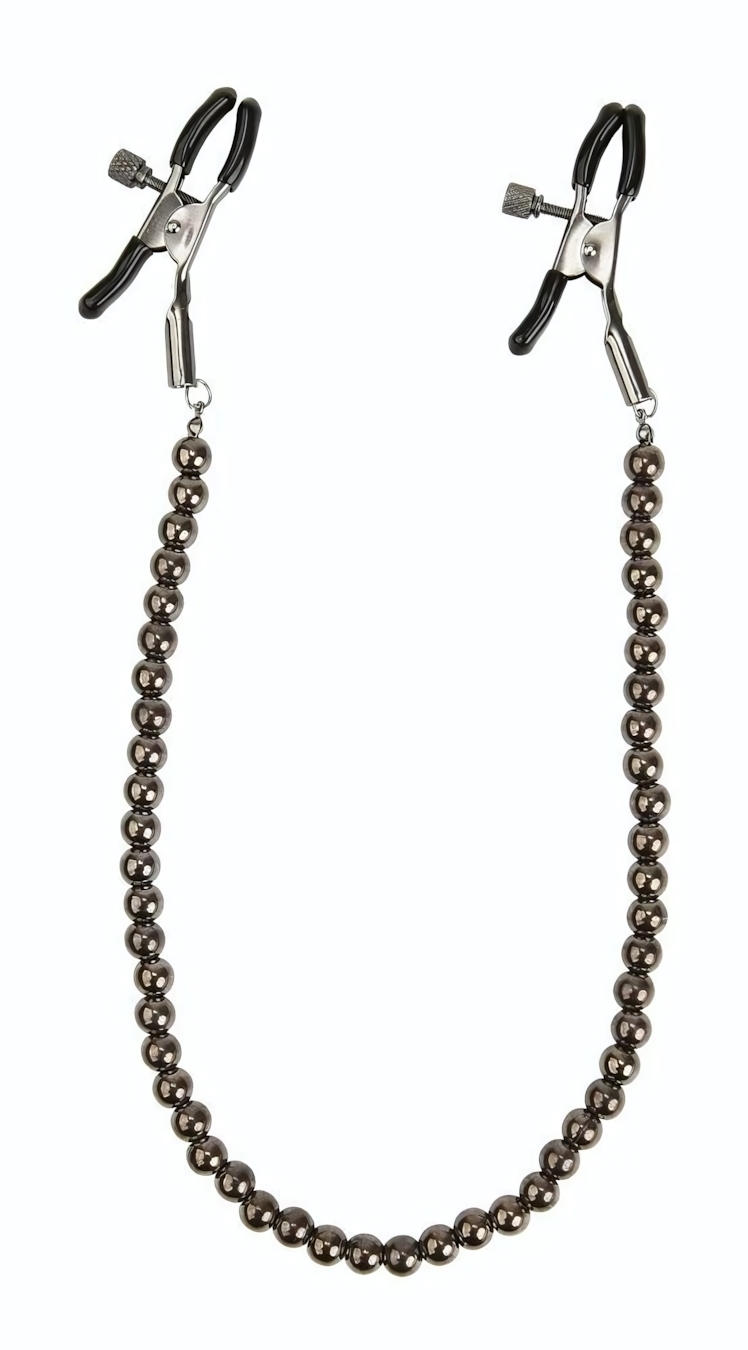 Зажимы на соски с цепочкой из бусин, регулируемые, черный, 6.25х1.25см