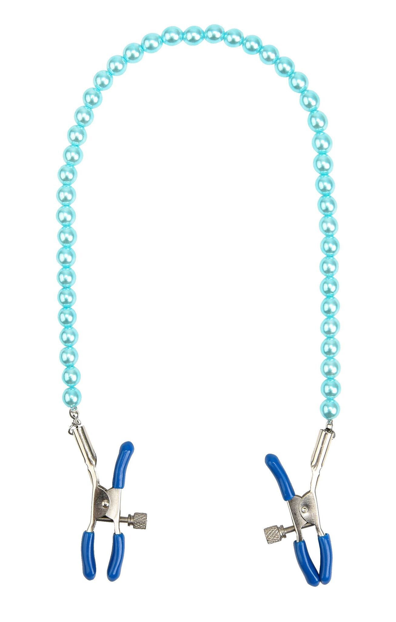 Регулируемые зажимы на соски с цепочкой и бусинами, мягкие наконечники, металл/пластик, голубой, 6,25х1,25 см