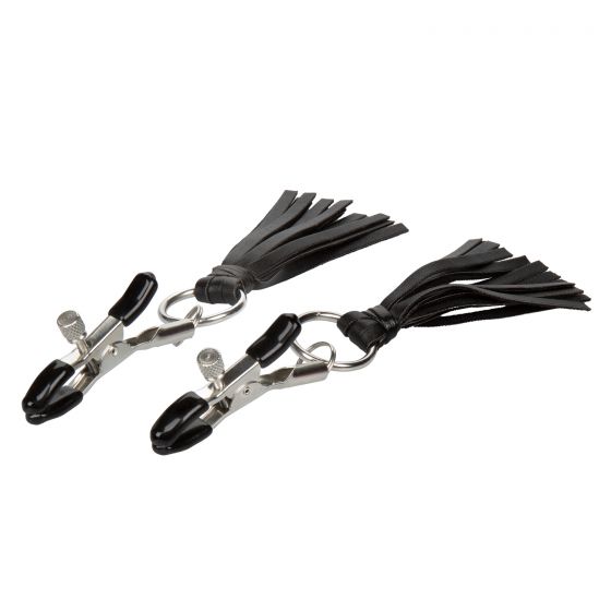 Регулируемые зажимы с подвесками в виде черных кистей созданы для деликатной стимуляции и эстетичного дополнения интимного образа. Модель "Playful Tassels" сочетает в себе функциональность классических клипс и декоративность стильного аксессуара, позволяя экспериментировать с тактильными ощущениями и визуальным эффектом.