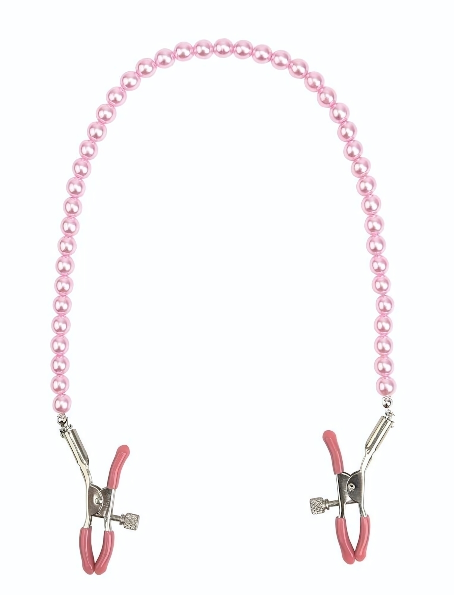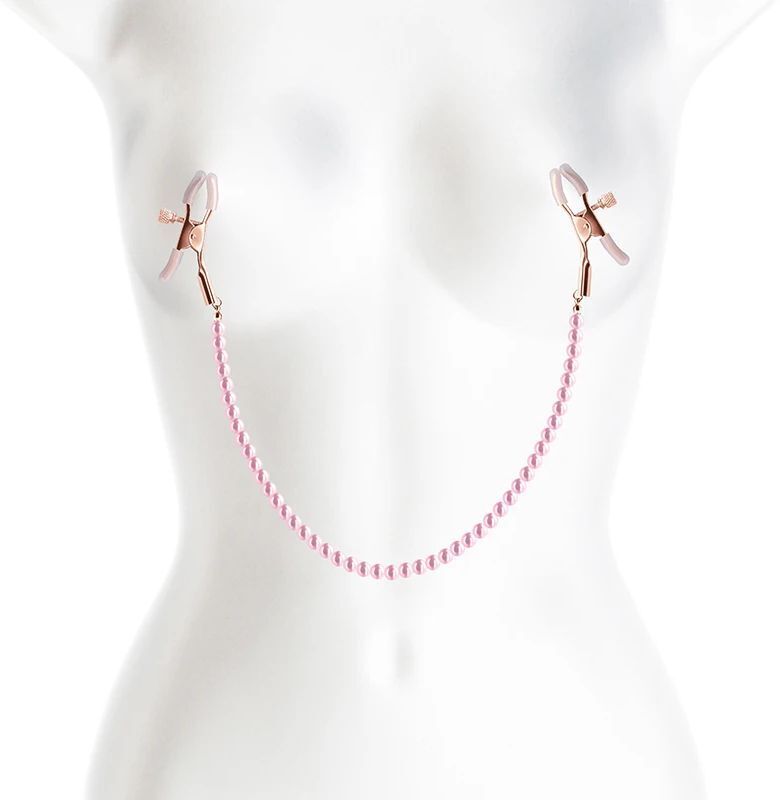 Зажимы для сосков с цепочкой из бусин, регулируемые, розовые, металл/пластик, 6,25х1,25 см
