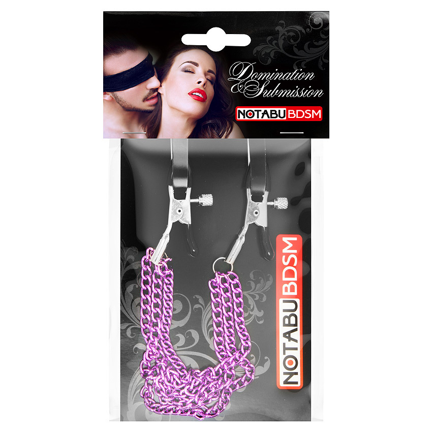 Зажимы для сосков с цепочками, фиолетовые, регулируемое давление, металл с эластичными накладками