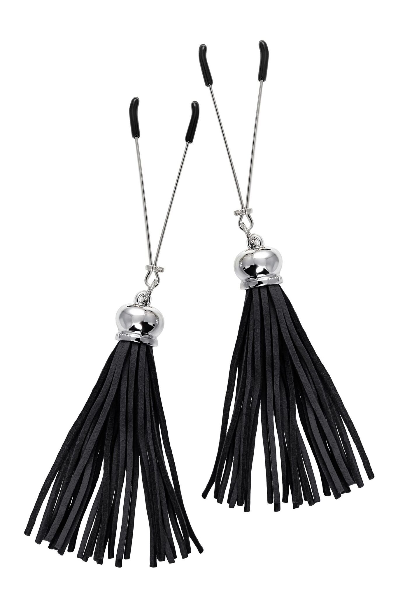 Зажимы-вилки на соски с регулируемым сжатием, черные кисточки из замши — Pecado