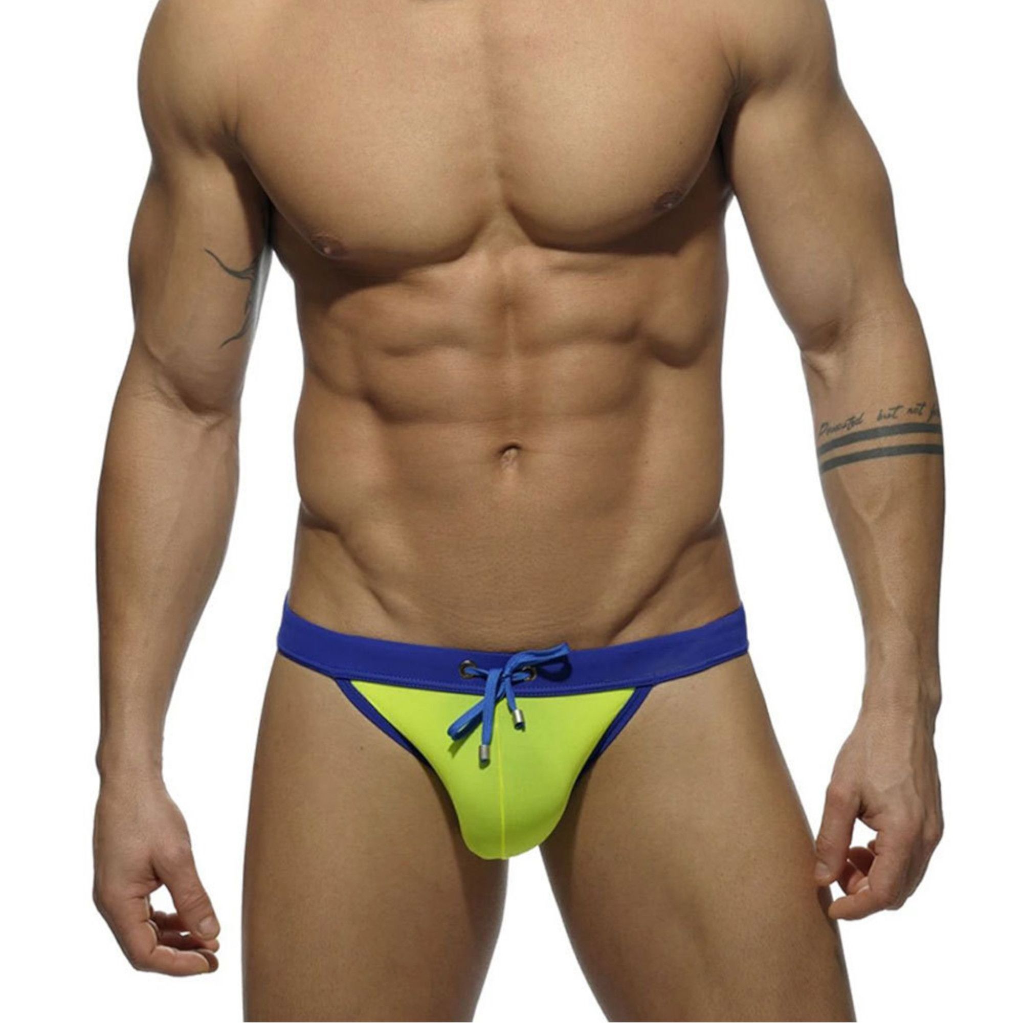 Эти мужские плавки-танга созданы для тех, кто ценит свободу движений и элегантный дизайн. Обтягивающая форма с регулируемым шнурком обеспечивает идеальную посадку, а яркий контрастный пояс добавит индивидуальности вашему образу у воды.