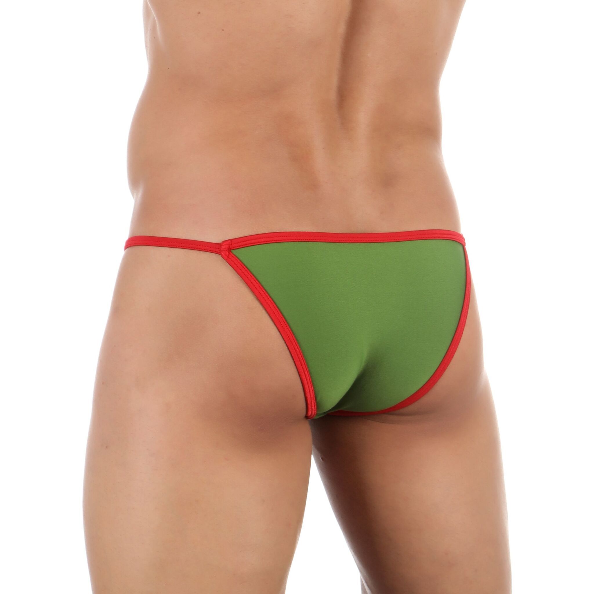 Эротичные зеленые трусы-танга XL с контрастной отделкой