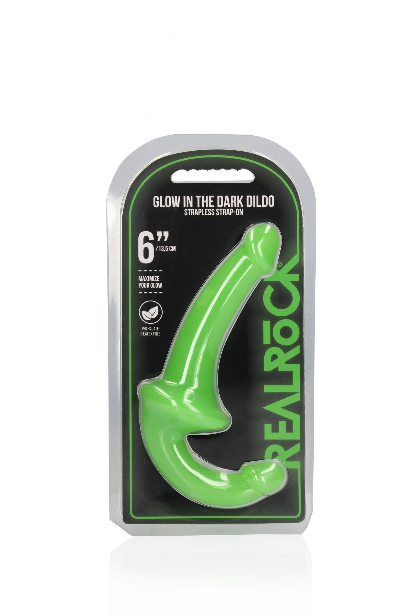 Страпон безремневой 'RealRock', неоновое свечение, TPE, зеленый, 20 см, диаметр 3 см