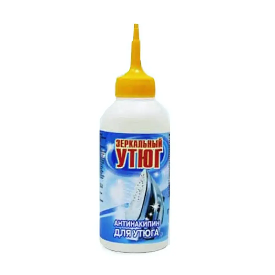 Объем флакона составляет 150 мл, что достаточно для длительного использования. Бутылка выполнена в белом цвете с яркими синими и красными элементами, а желтая крышка и носик делают процесс применения еще более удобным. Не упустите возможность сделать ваш утюг как новый с антинакипином 'Зеркальный утюг'!