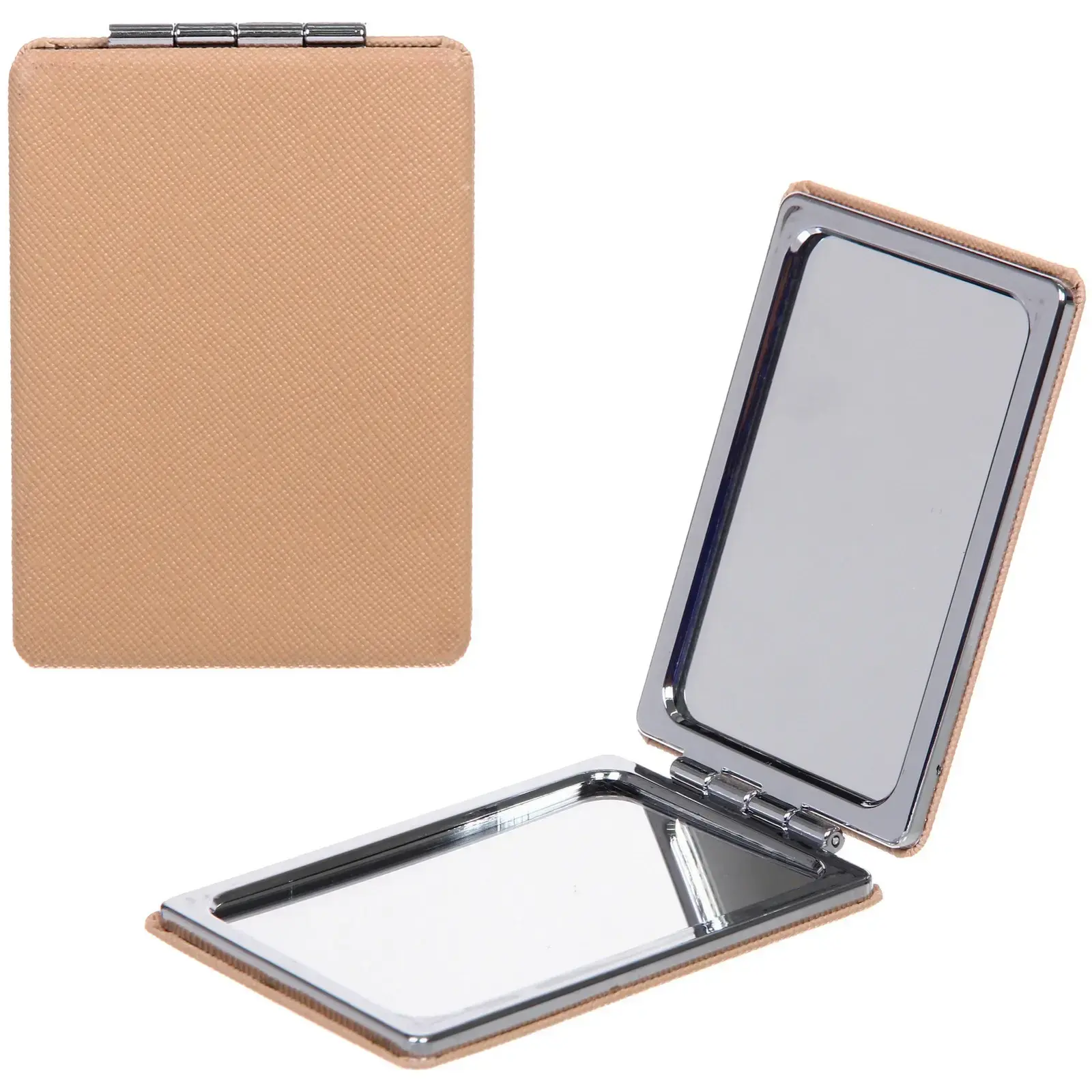 Практические детали: корпус из металла с текстурированным покрытием, внутренние зеркала из стекла, размер 9*6 см, цвет — золото, материал — металл, стекло, ПВХ.