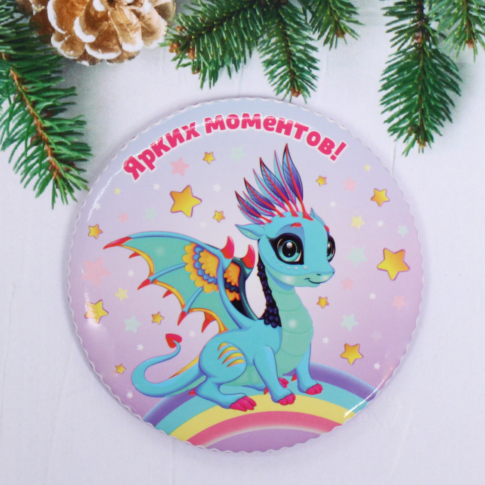 Почему стоит выбрать именно это зеркало? Во-первых, его яркий и привлекательный дизайн с изображением дракона и надписью «Ярких моментов!» поднимет вам настроение каждый раз, когда вы будете им пользоваться. Во-вторых, зеркало изготовлено из качественных материалов: металл и стекло, что гарантирует долговечность и надежность. Вы можете быть уверены, что оно прослужит вам долго, сохраняя свой первоначальный вид.