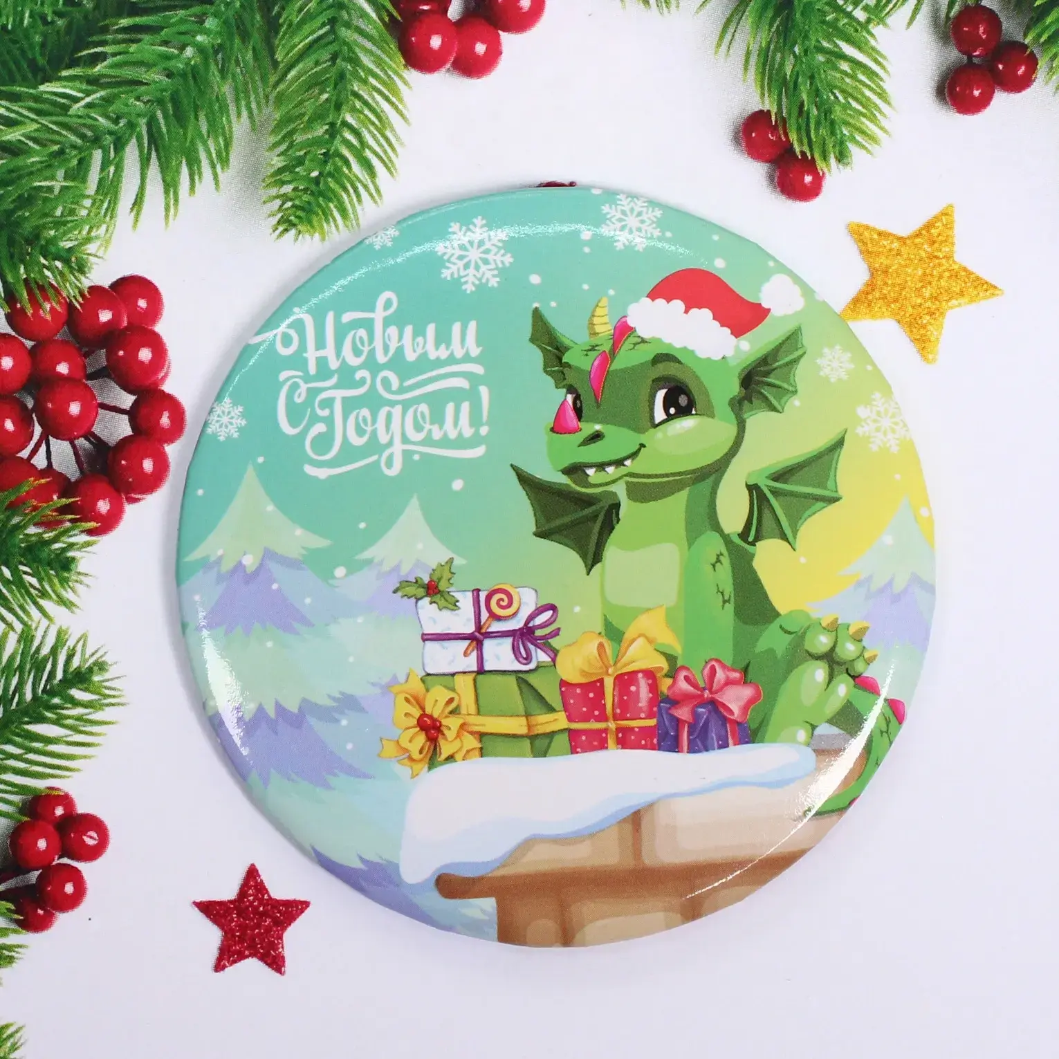 Выбирая зеркало «Хитрый Дракоша Чипа», вы получаете не только функциональный предмет, но и оригинальный аксессуар, который станет отличным подарком для друзей и близких. Изготовленное из качественных материалов — металла и стекла, оно гарантирует долговечность и надежность. Яркий и привлекательный дизайн с новогодними элементами делает его идеальным для праздничного настроения.