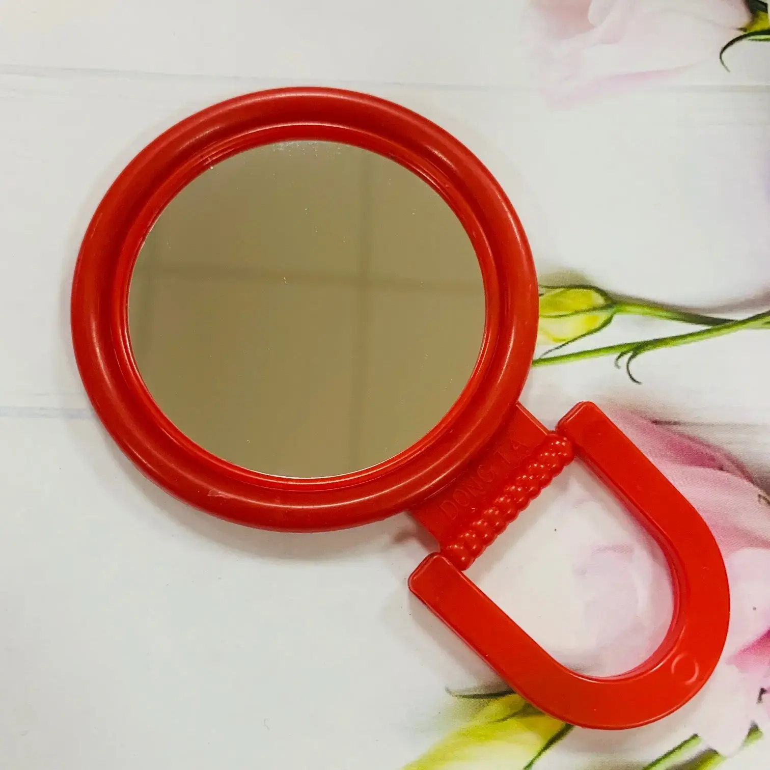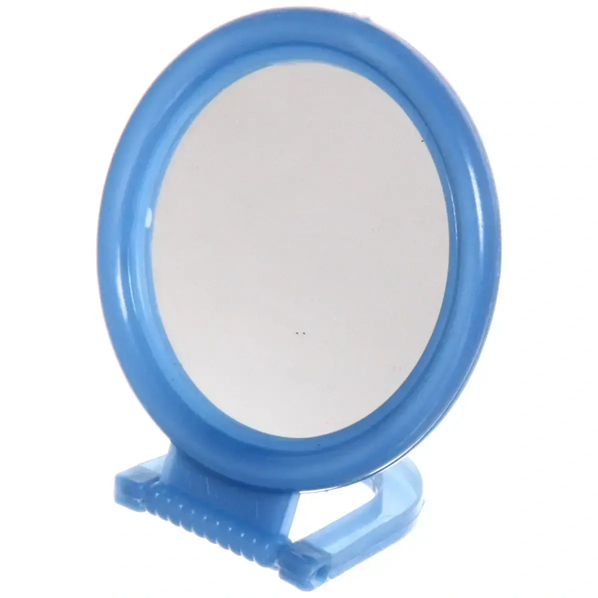 Зеркало имеет круглую форму и установлено на устойчивой подставке, что обеспечивает надежность и комфорт при использовании. Оно идеально подходит для личной гигиены и косметических процедур. Благодаря своему небольшому размеру, зеркало легко помещается в сумке или на столе, что делает его идеальным для путешествий.