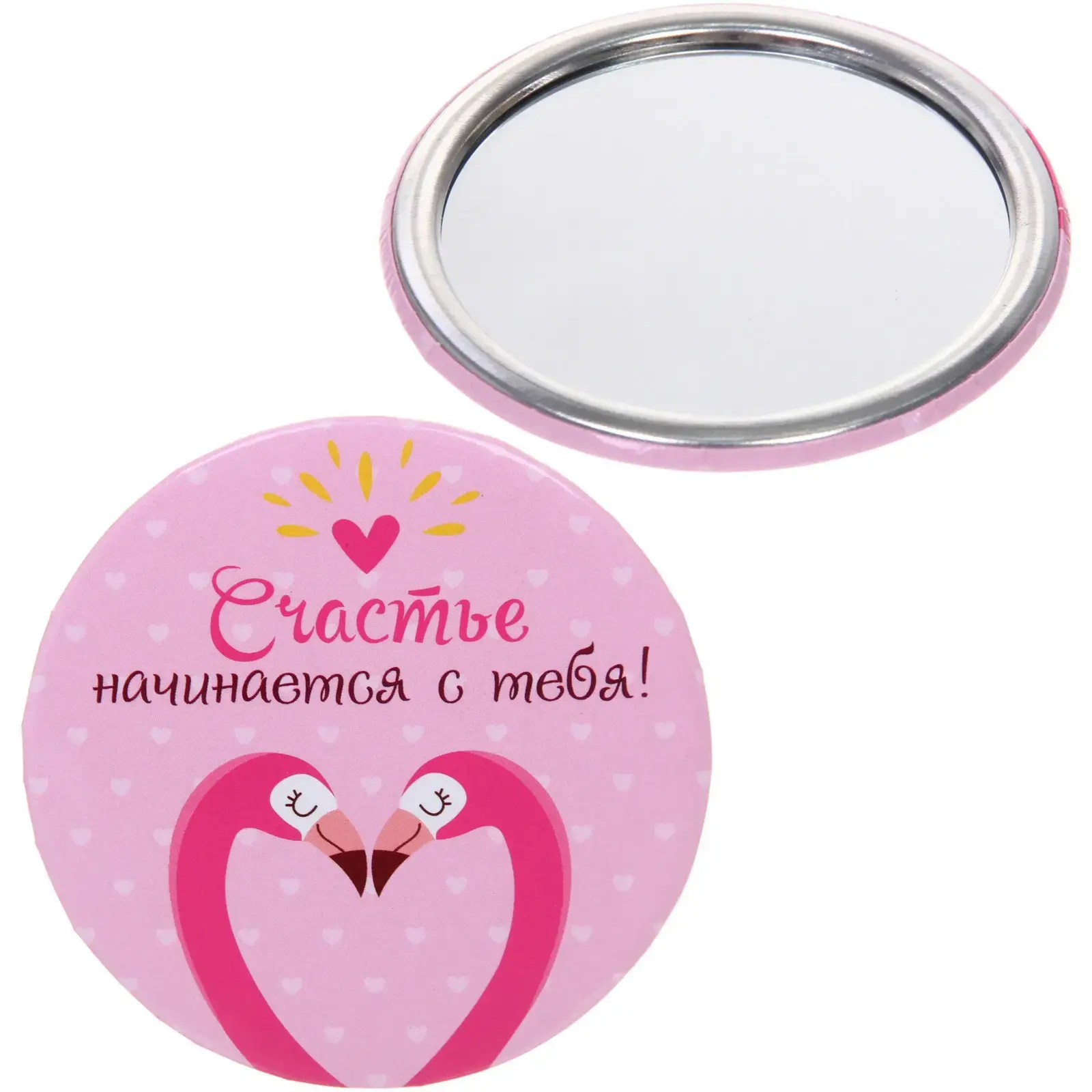 Погрузитесь в мир красоты и стиля с косметическим зеркалом круглой формы из коллекции «КОЛЛЕКЦИЯ МАРЦИПАН». Это зеркало не только практично, но и станет ярким акцентом вашего туалетного столика. С его помощью вы сможете легко и удобно наносить макияж, делать прически или просто проверять свой внешний вид в любое время. Яркий дизайн с изображением двух фламинго, образующих сердце, добавляет романтики и позитивного настроения в ваш день.