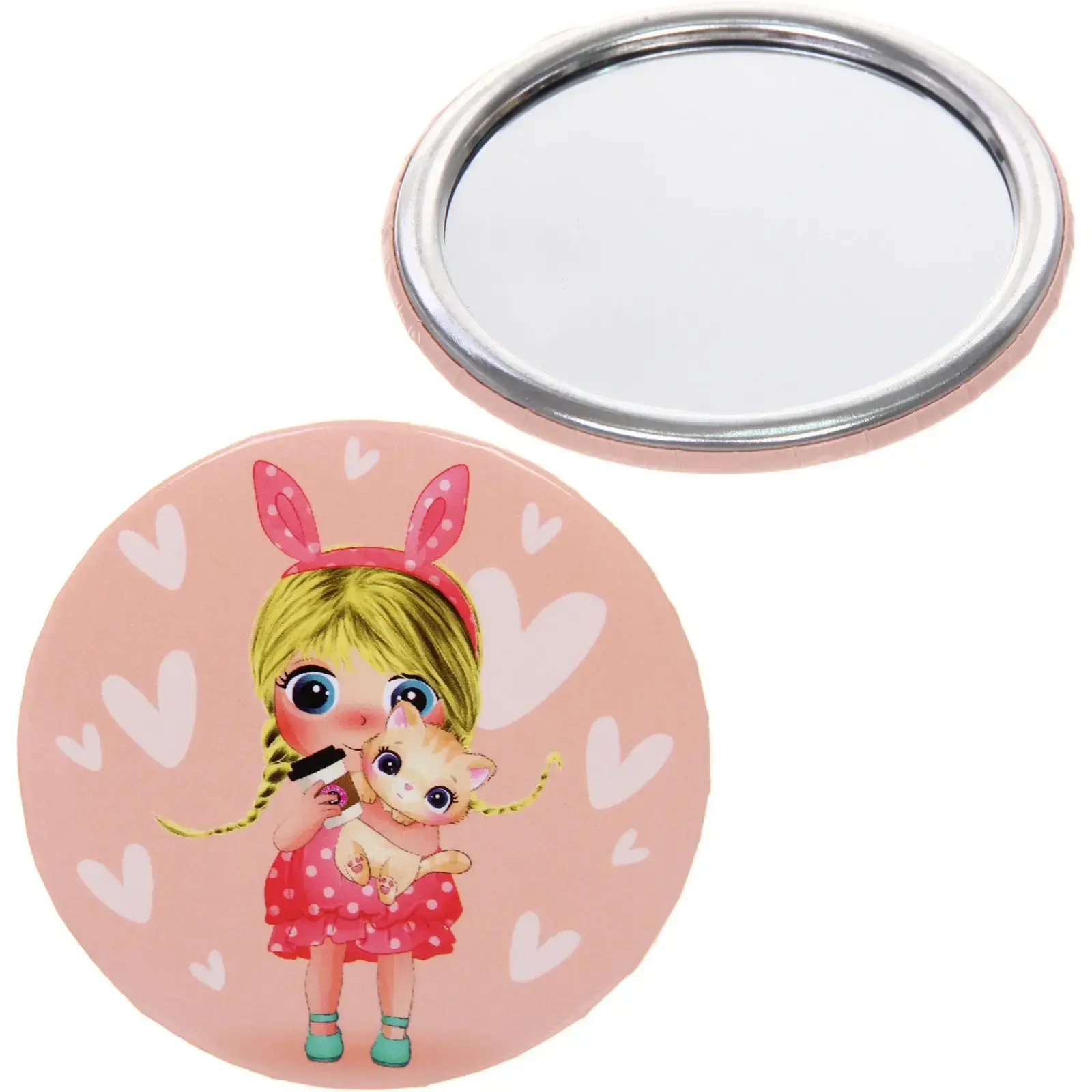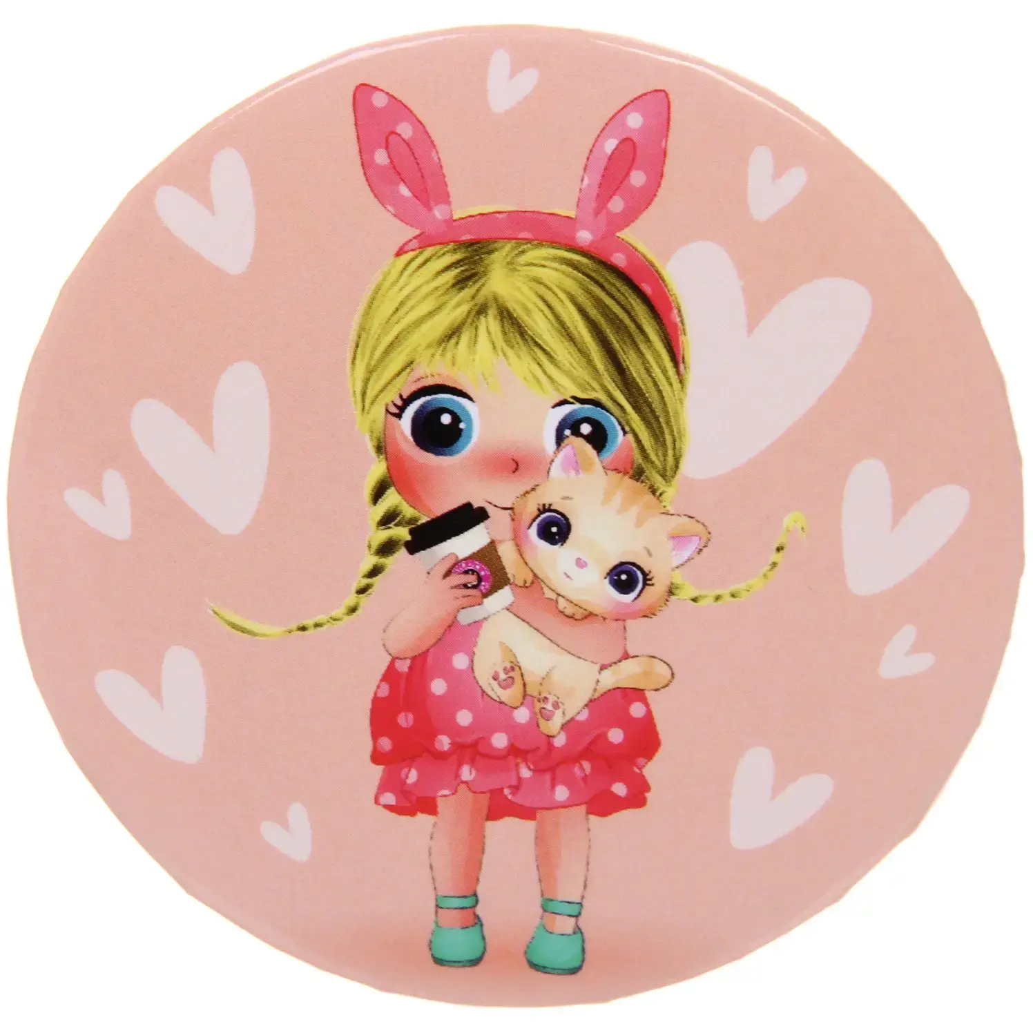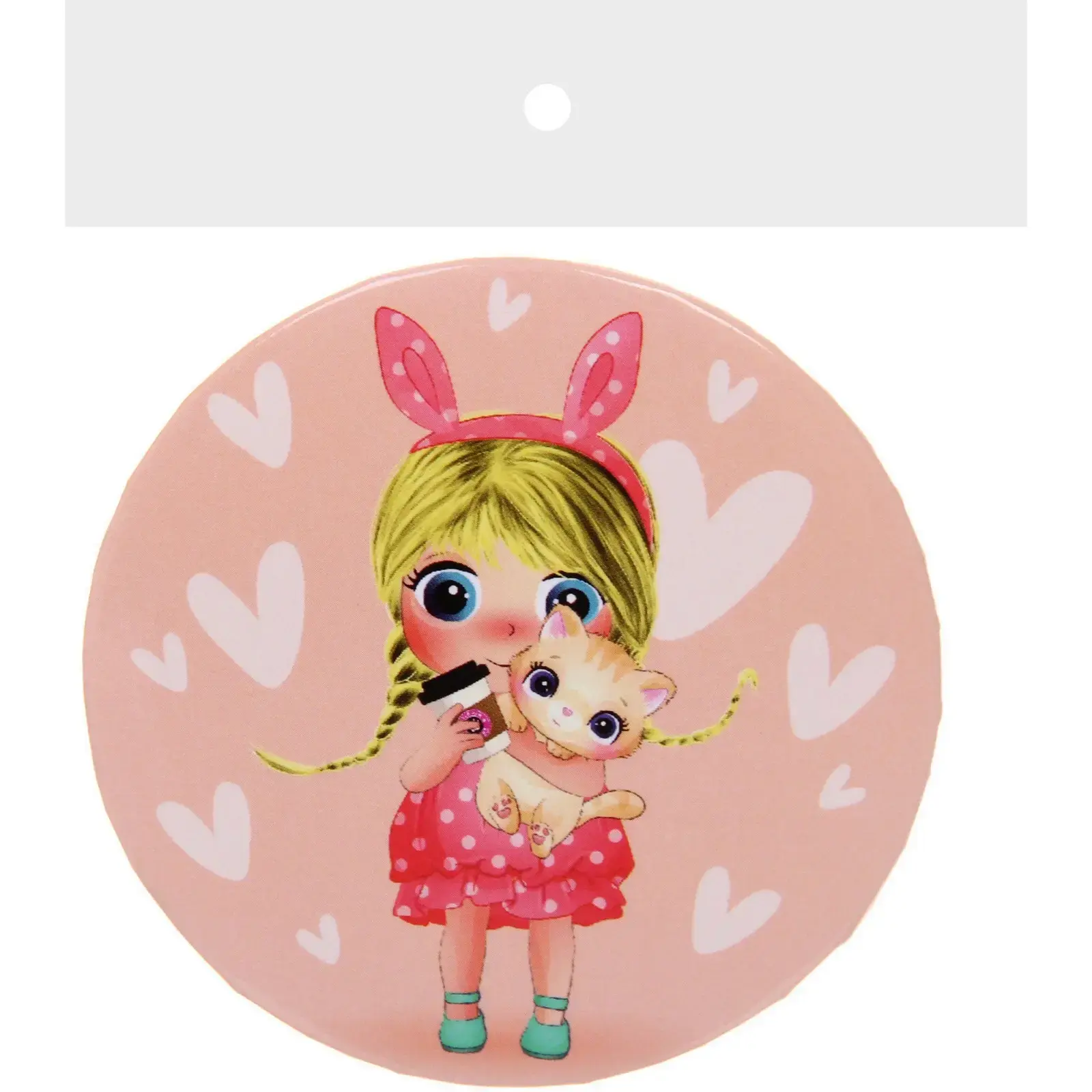 Погрузитесь в мир красоты и стиля с косметическим зеркалом круглой формы из коллекции «Марципан». Это зеркало не только практично, но и станет ярким акцентом вашего туалетного столика. Его нежный розовый цвет и милый дизайн с изображением девочки и кошки создают атмосферу уюта и радости. Идеально подходит для использования дома или в поездках, так как легко помещается в сумке.