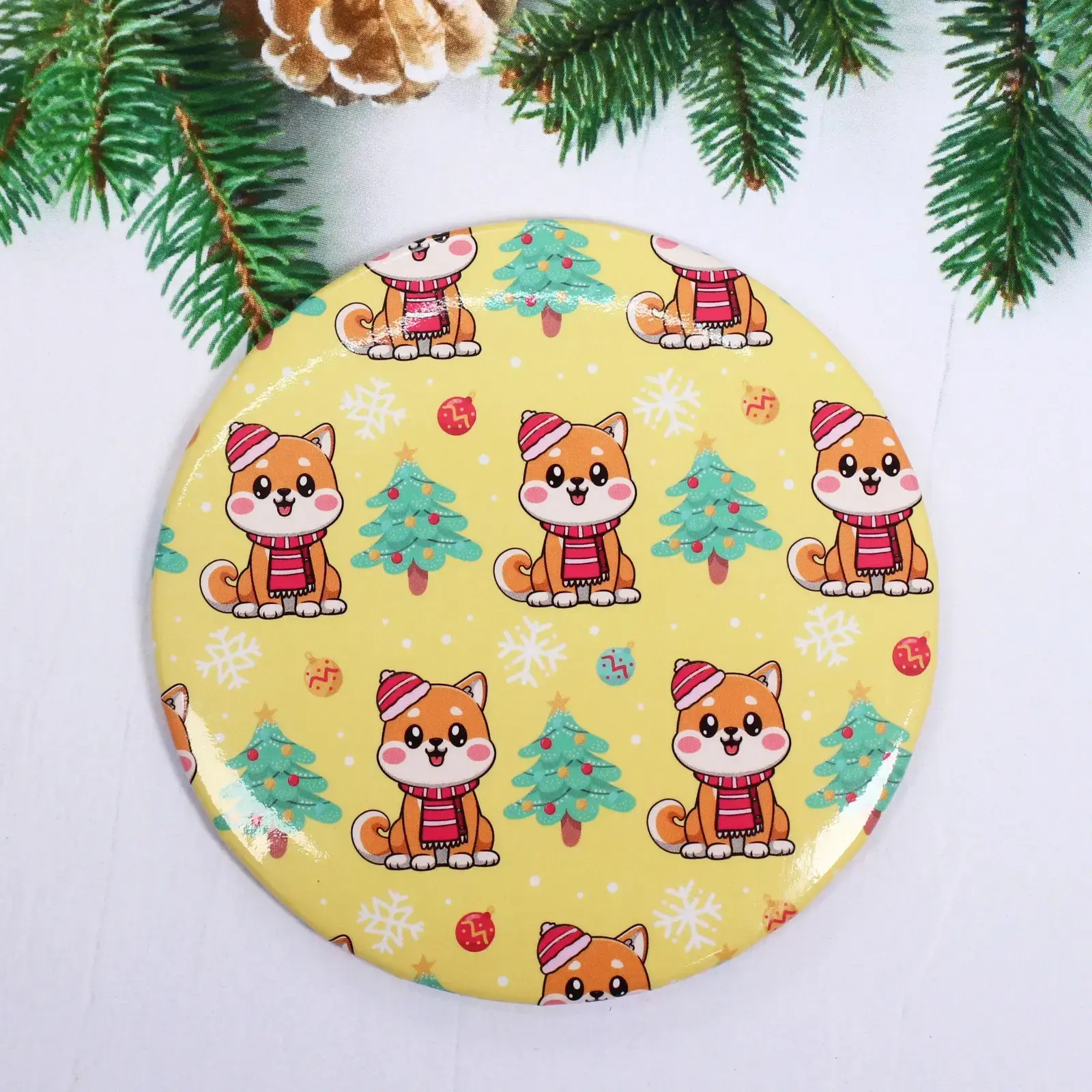 Зеркало удобно использовать в любых условиях: дома, на вечеринках или в поездках. Оно легко помещается в сумочку, что делает его идеальным спутником для тех, кто ценит красоту и комфорт. Яркий дизайн с изображениями мультяшных собак и новогодних елок создаст праздничное настроение и поднимет вам настроение в любое время года.
