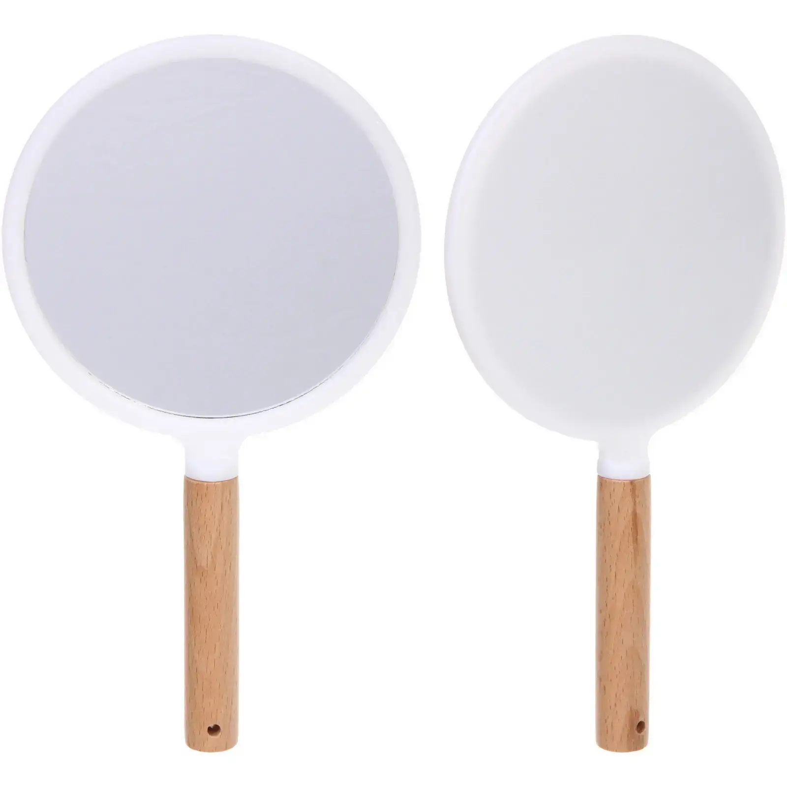 Зеркало выполнено из качественных материалов: пластика, стекла и дерева, что обеспечивает его долговечность и надежность. Белый цвет рамки легко вписывается в любой интерьер, а текстурированная ручка из светлого дерева добавляет изделию шарма. Это зеркало — отличный подарок для себя или близких, которое будет радовать вас каждый день.