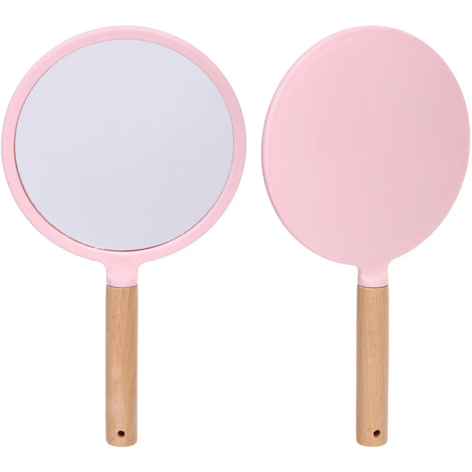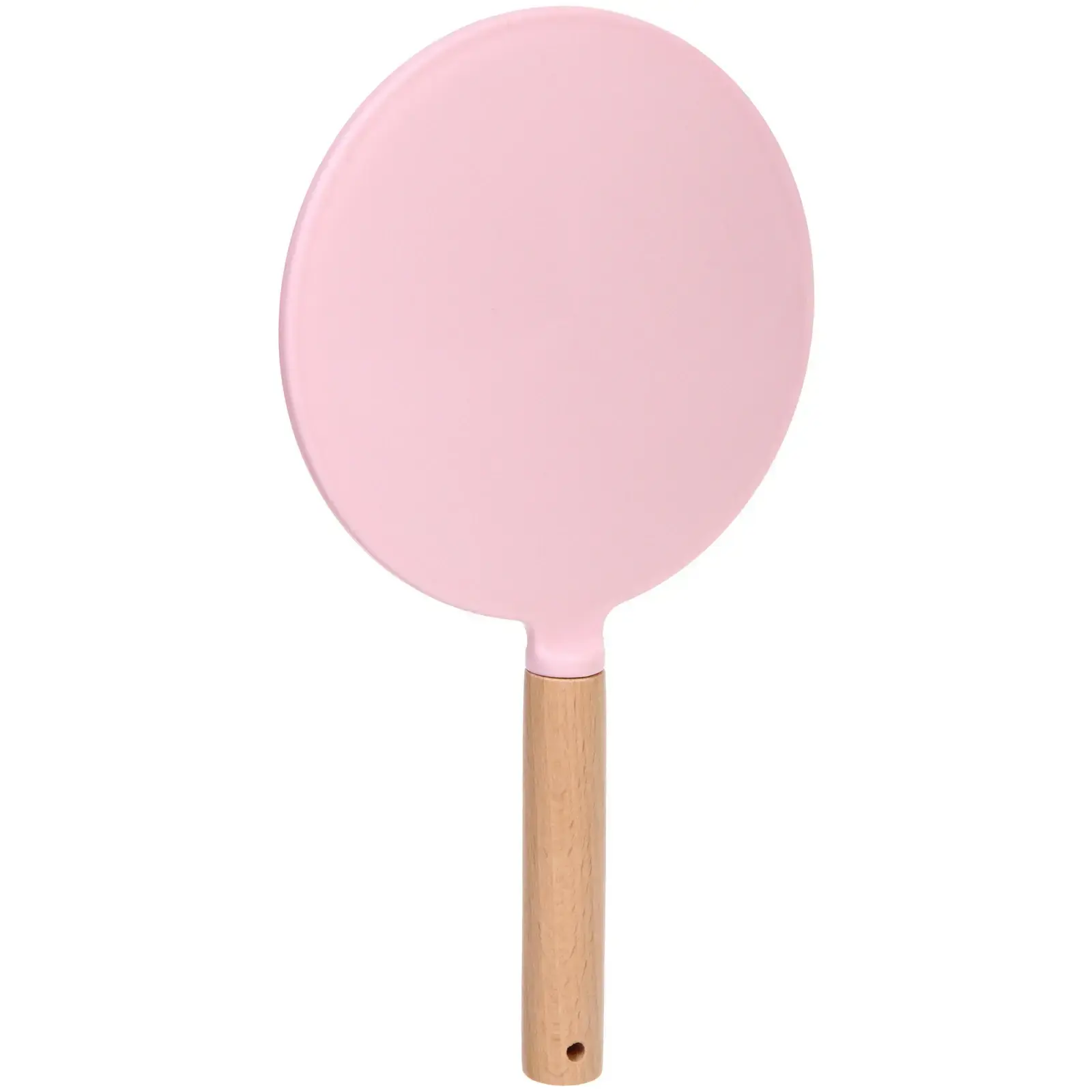 Размер зеркала составляет 14х25 см, что делает его компактным и удобным для хранения. Ручка выполнена из натурального дерева, что придает изделию прочность и стильный вид. Пудровый цвет рамки легко впишется в любой интерьер, а простота дизайна позволит использовать зеркало в любых условиях.